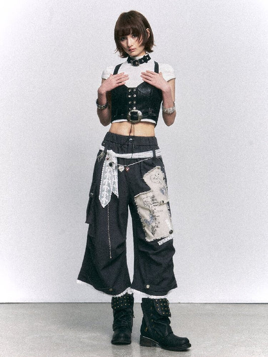 Punk Vintage Suspender T-shirt Two-piece Set【s0000015968】