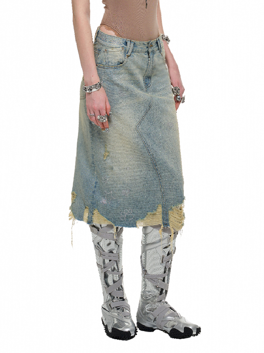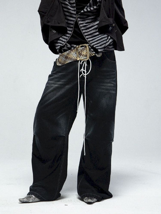 Vintage Yellow Mud Distressed Wide-Leg Jeans【s0000014873】