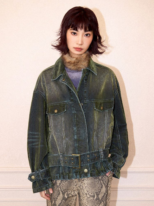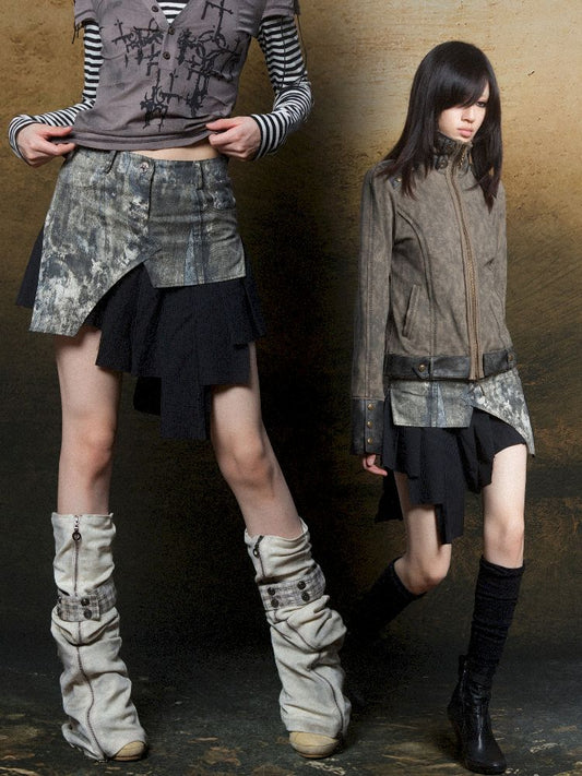 Rivet Fur Stitching Leather Coat【s0000015016】