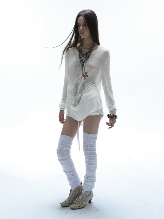 Y2K Millennium Print Long Sleeve Mesh Top【s0000014915】