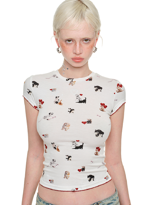 Yellow Ruffled Critter Print Shirt【s0000015032】