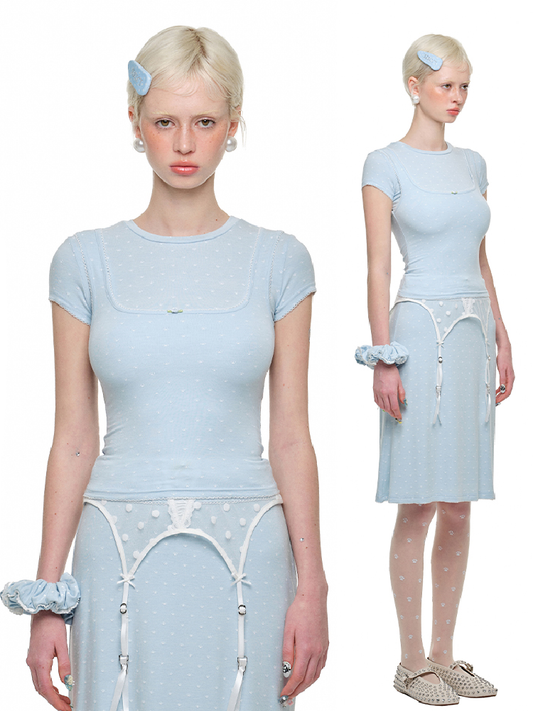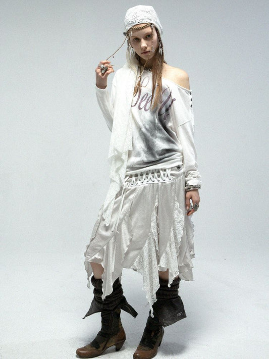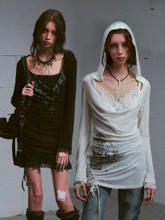 Drawstring Bat Sleeve Lace t-shirt【s0000012311】