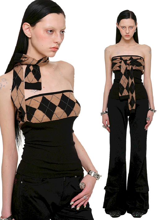 Blue Red Plaid Pony Knit Vest【s0000015023】