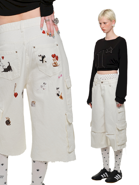Aged washed low-rise curved cutoff jeans【s0000012397】