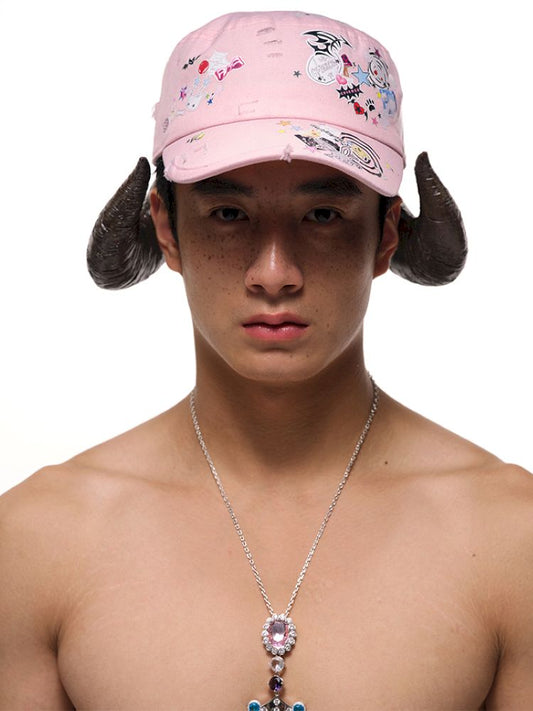 Embroidered Pointed Horn Trucker Hat【s0000004816】