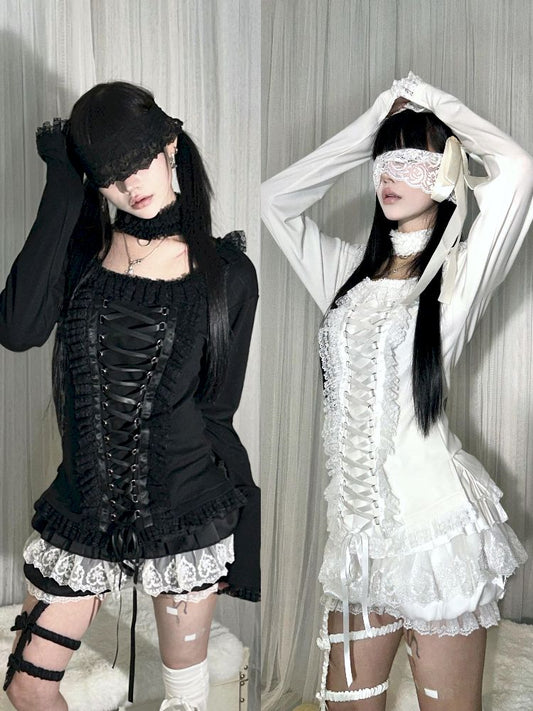 Drawstring Bat Sleeve Lace t-shirt【s0000012311】