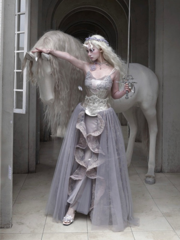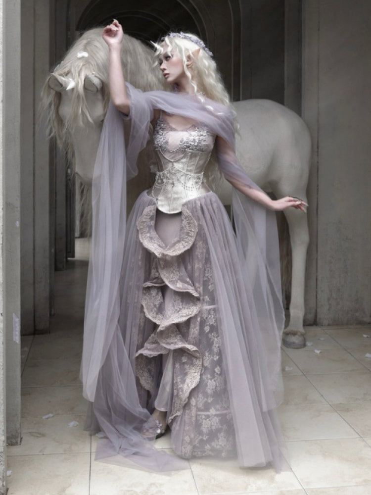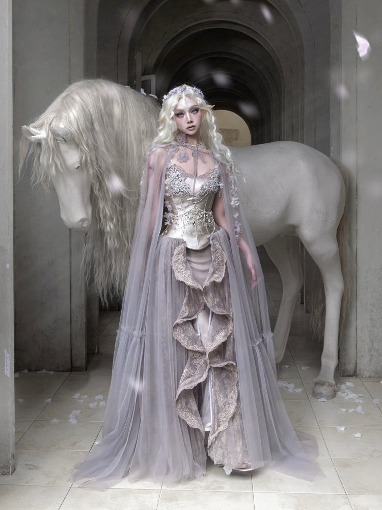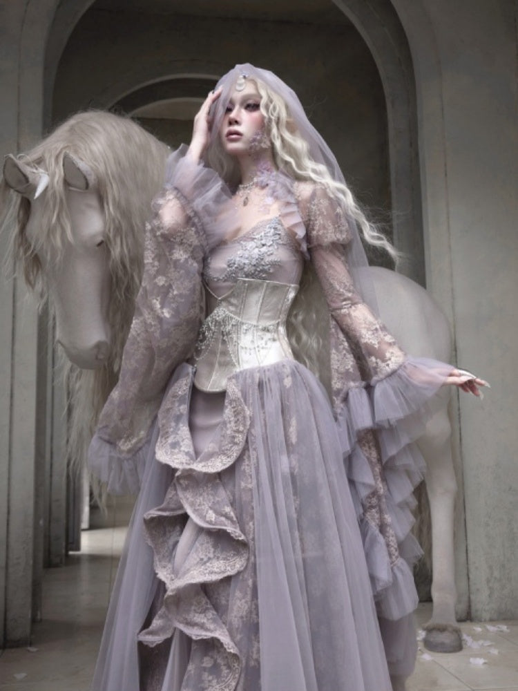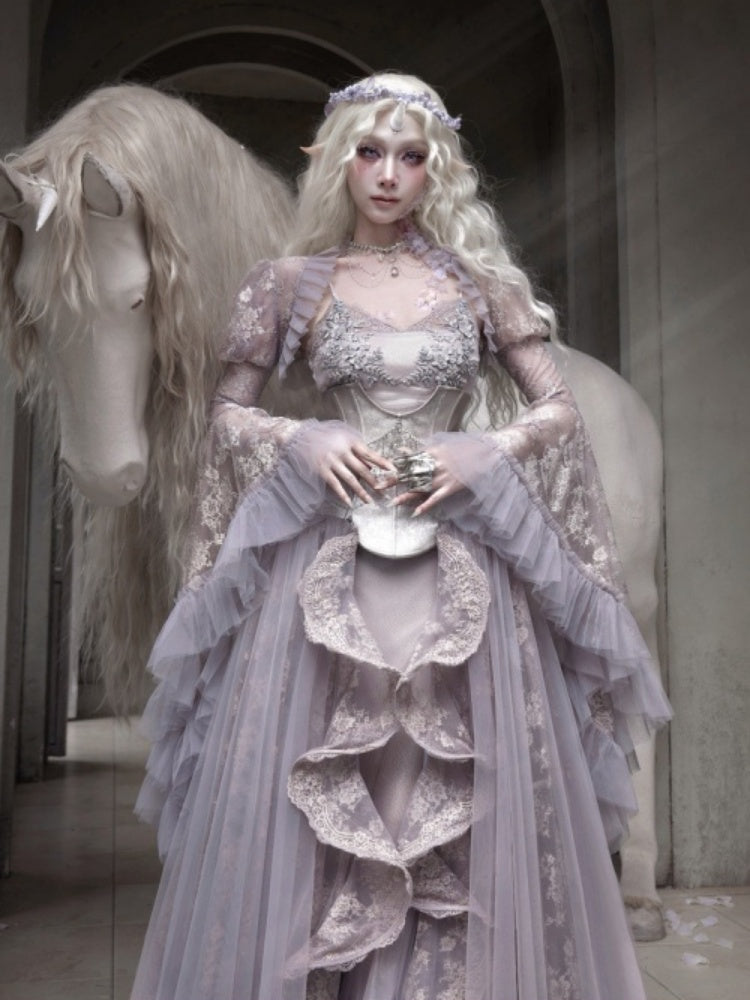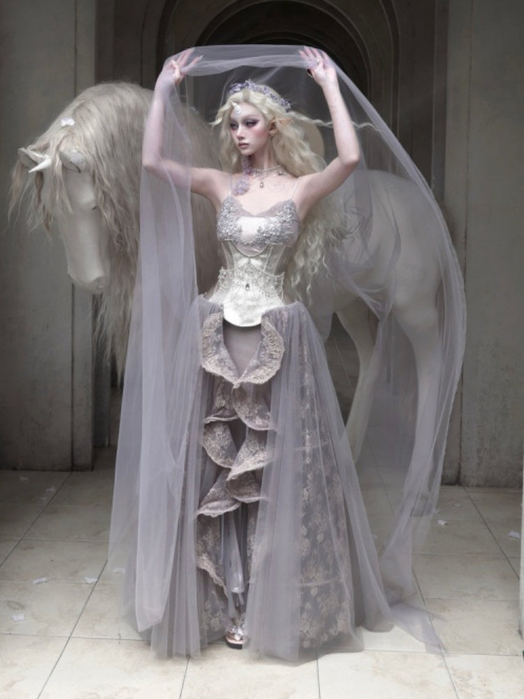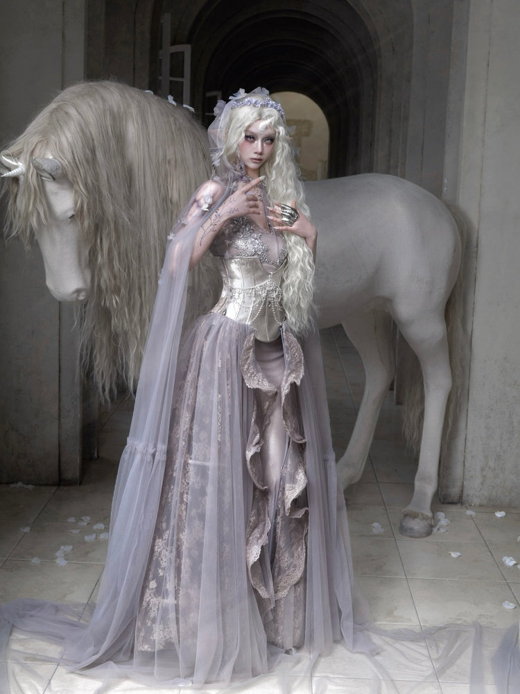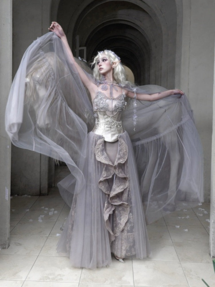 Silver Flower Asymmetrical Elf Wind Fairy Armor Fishbone Corset【s0000016143】