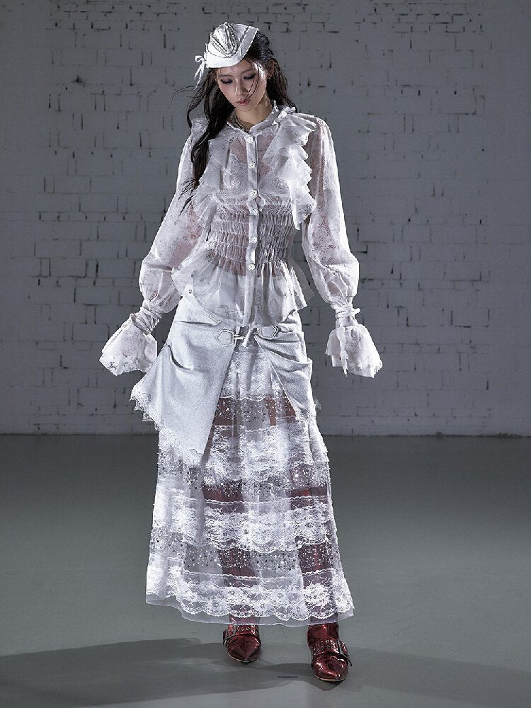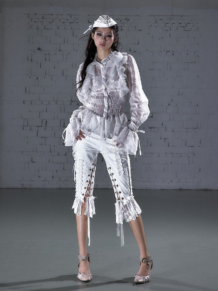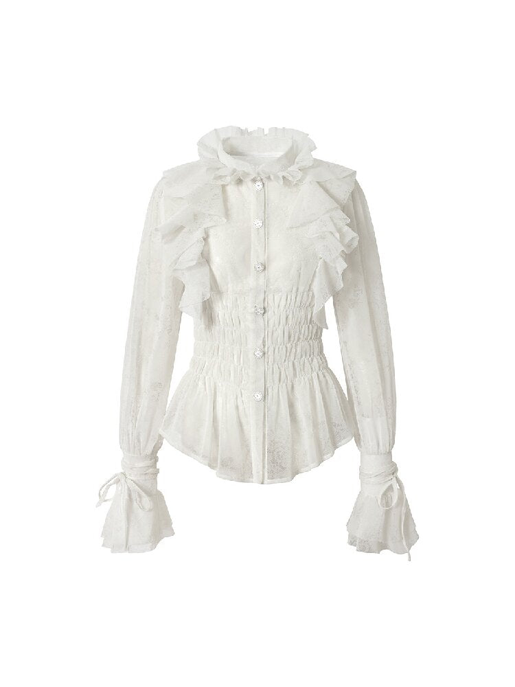 Ruffled Flocked Lace Stand Shirt【s0000016208】