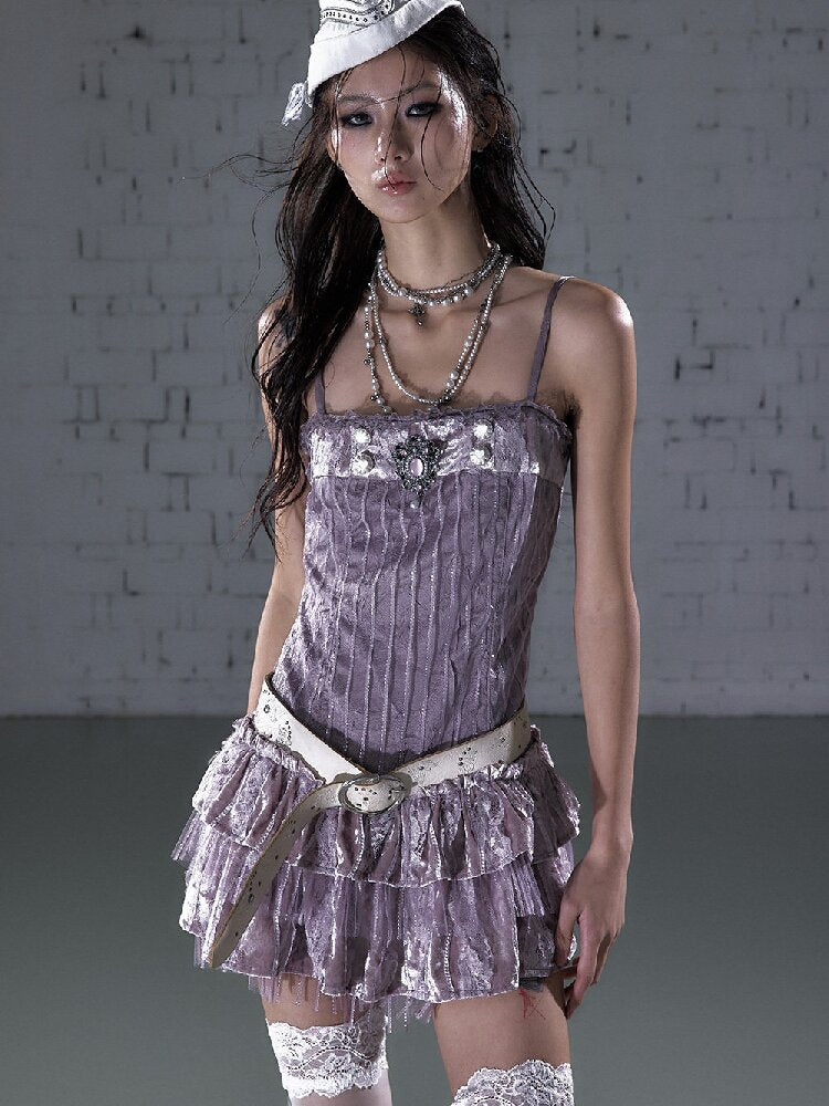 Mesh Velvet Suspender Slim Dress【s0000016211】