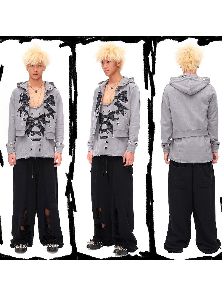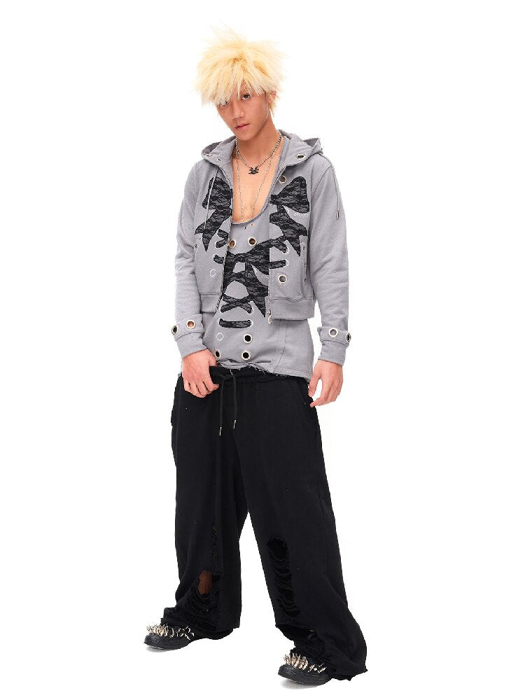 Lace Bow Rivet Distressed Vest【s0000016496】