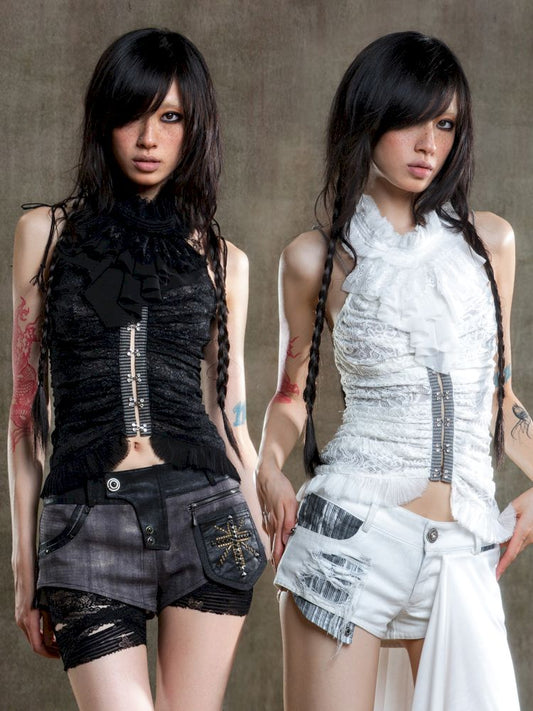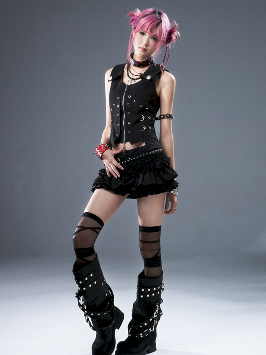 Off-Shoulder Ruffled Mid-Length Slimming Punk Top【s0000014124】