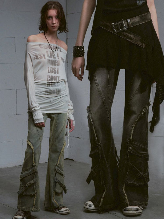 Punk Street Heavy Washed Bootcut Jeans【s0000011882】