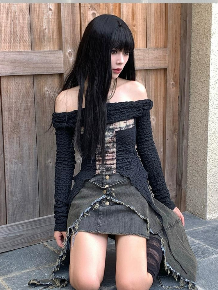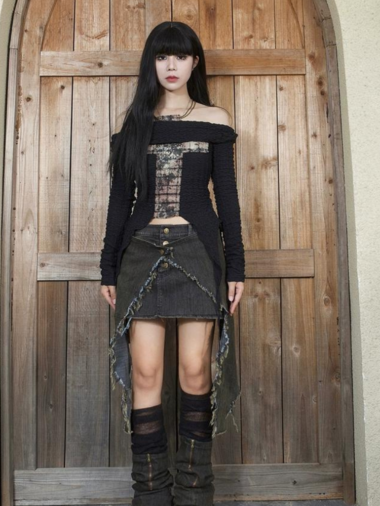 Cross Asymmetry Off Shoulder Tops【s0000003425】