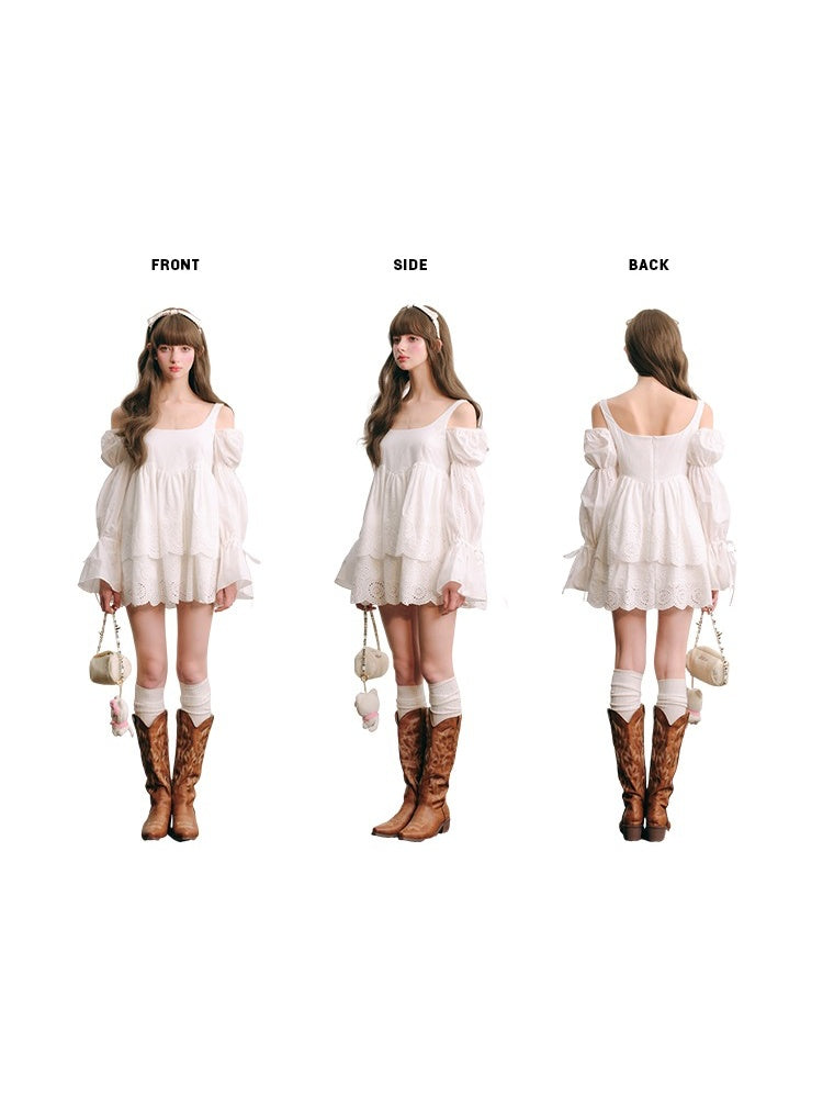Galaxy Wanlin Dreamboat white moonlight 100% cotton sash embroidery double perforation white color long sleeves clothing early autumn