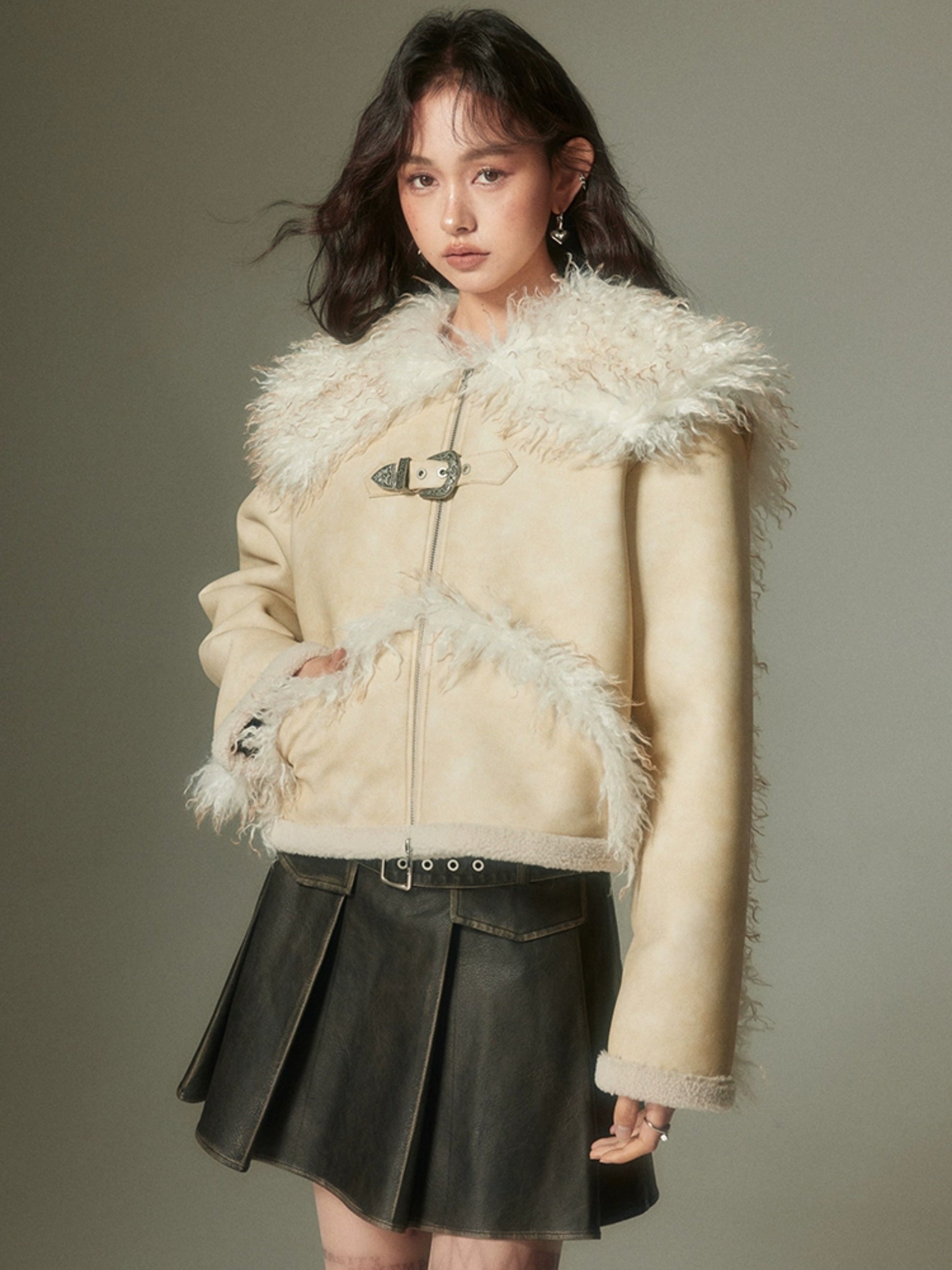Eco-friendly Fur Distressed Leather Jacket【s0000004254】