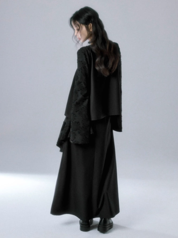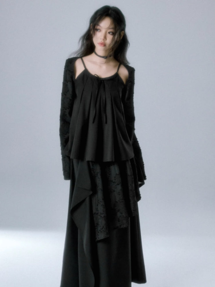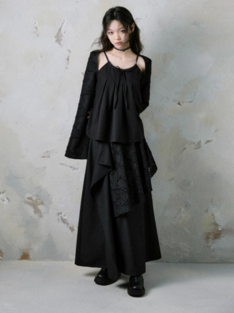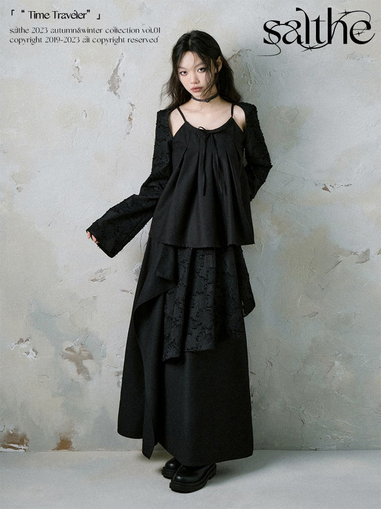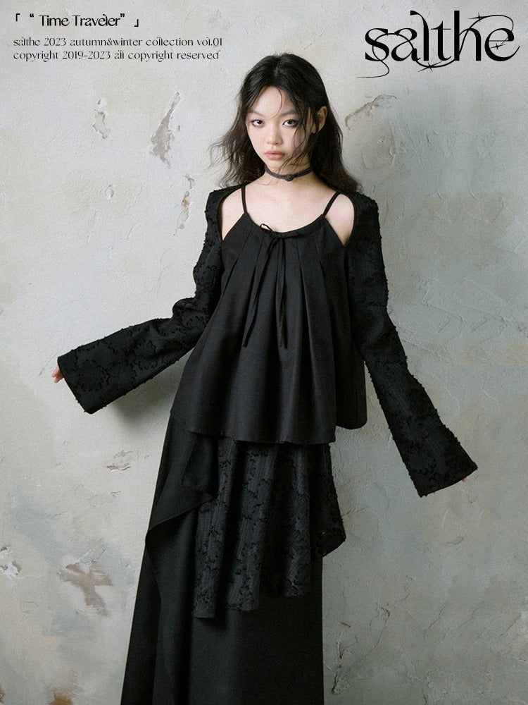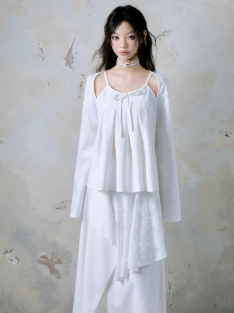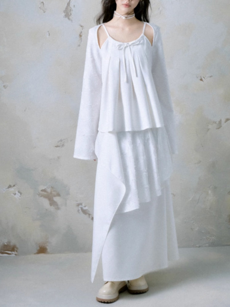 Jacquard Pleated Cut Out Tops & Irregular Layered Long Skirt【s0000004371】