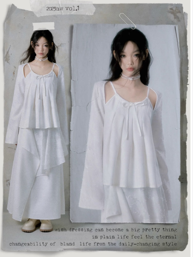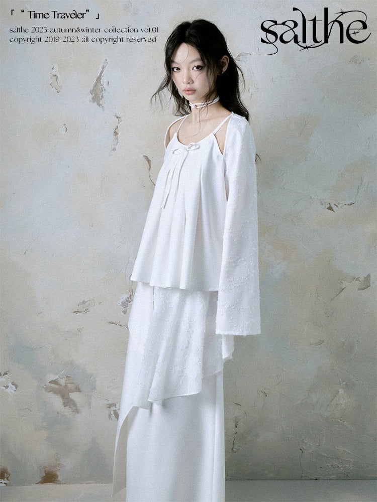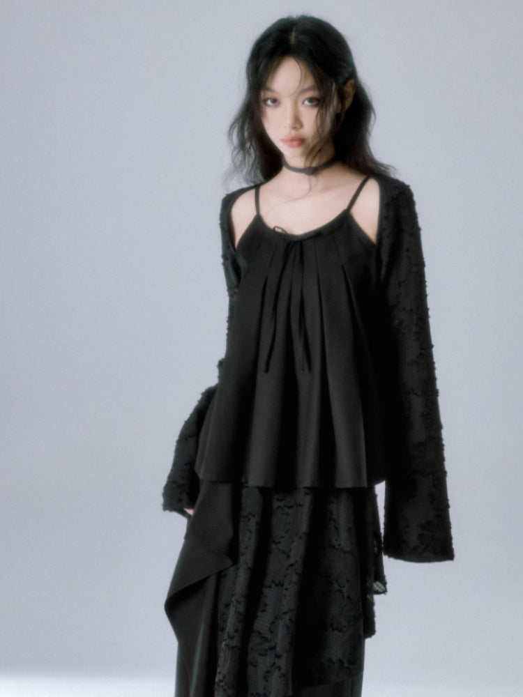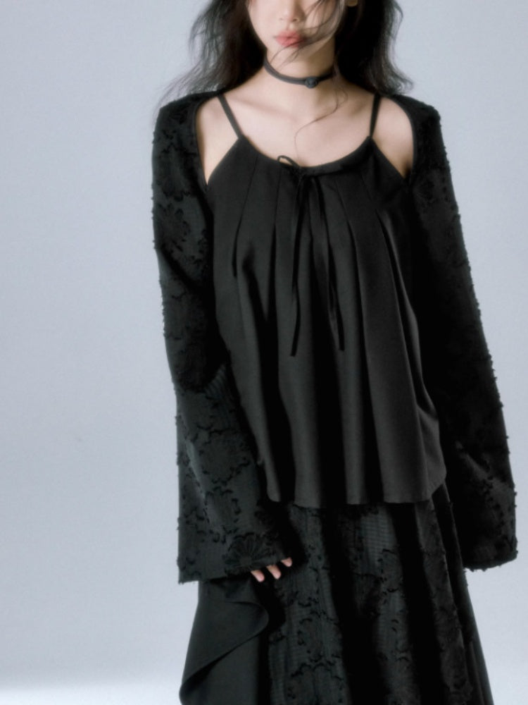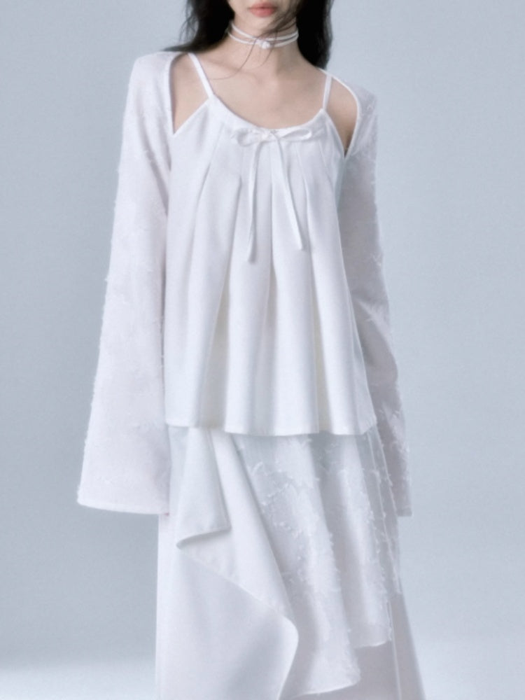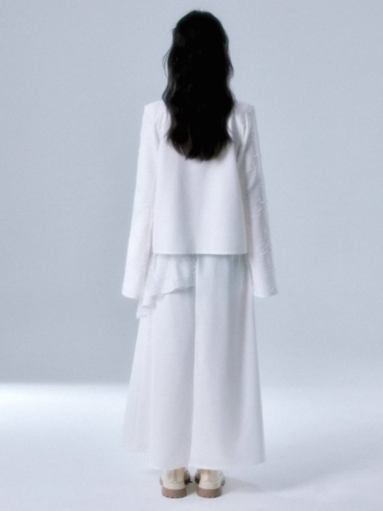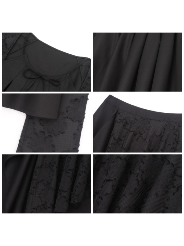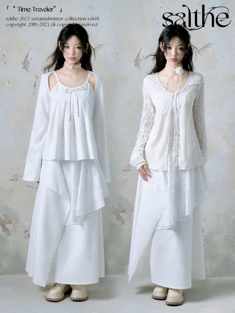 Jacquard Pleated Cut Out Tops & Irregular Layered Long Skirt【s0000004371】