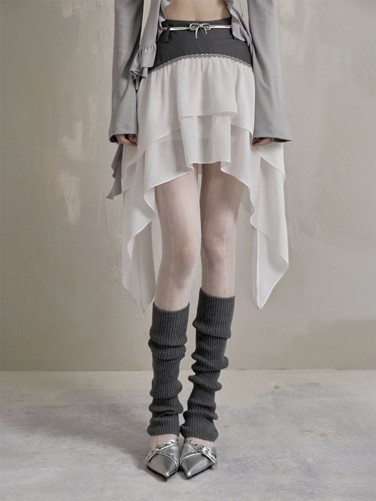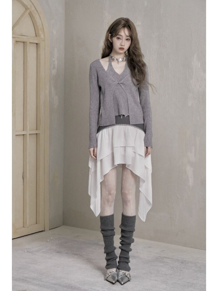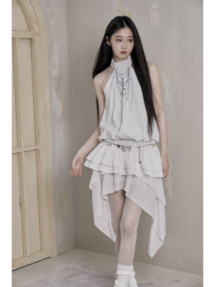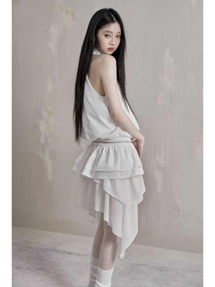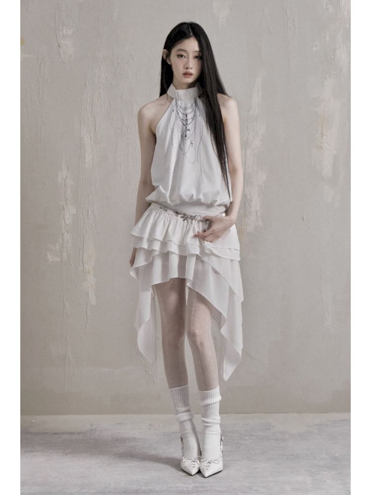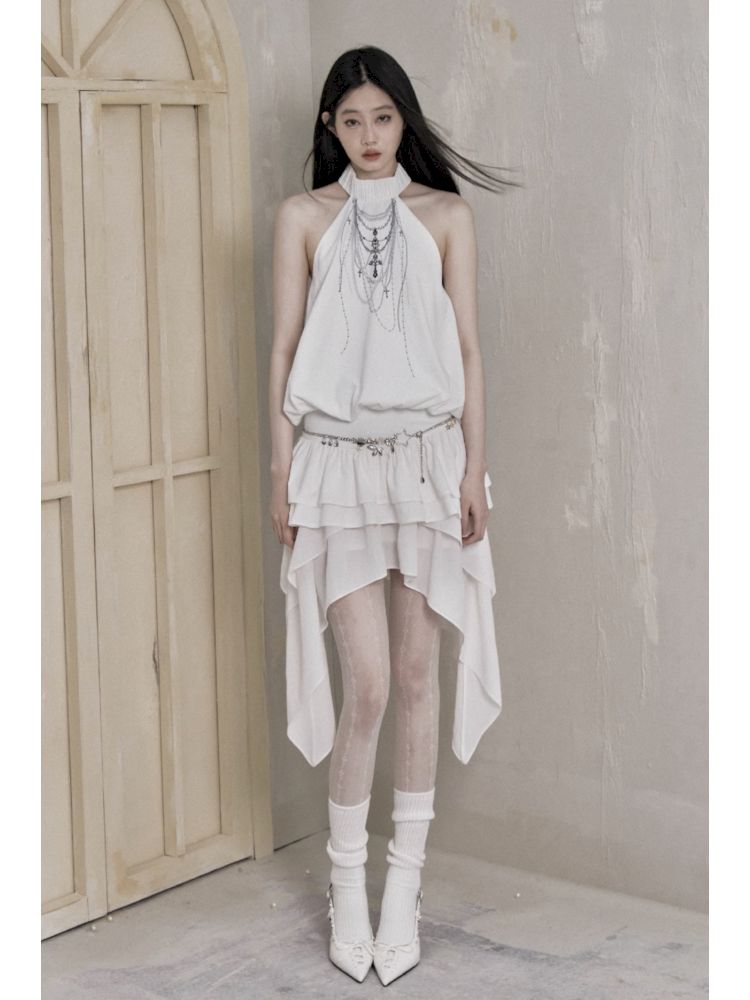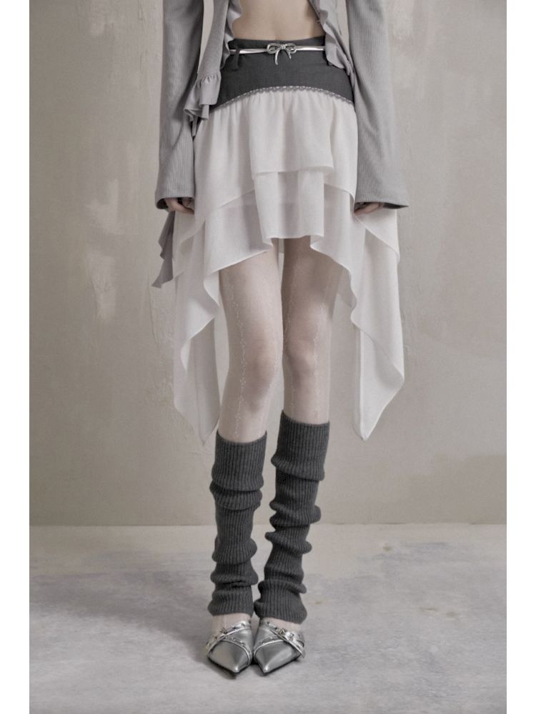 Irregular mesh splicing a-line high waist bustier skirt 【s0000007783】