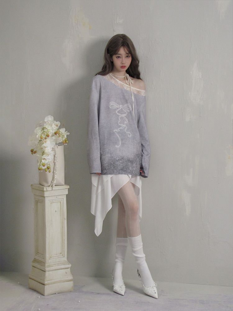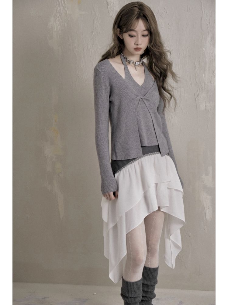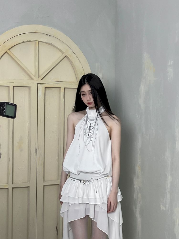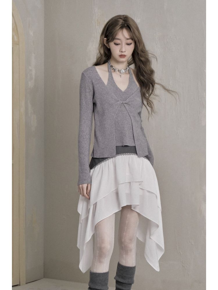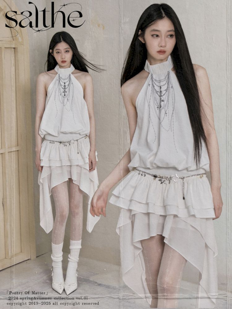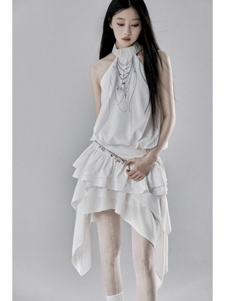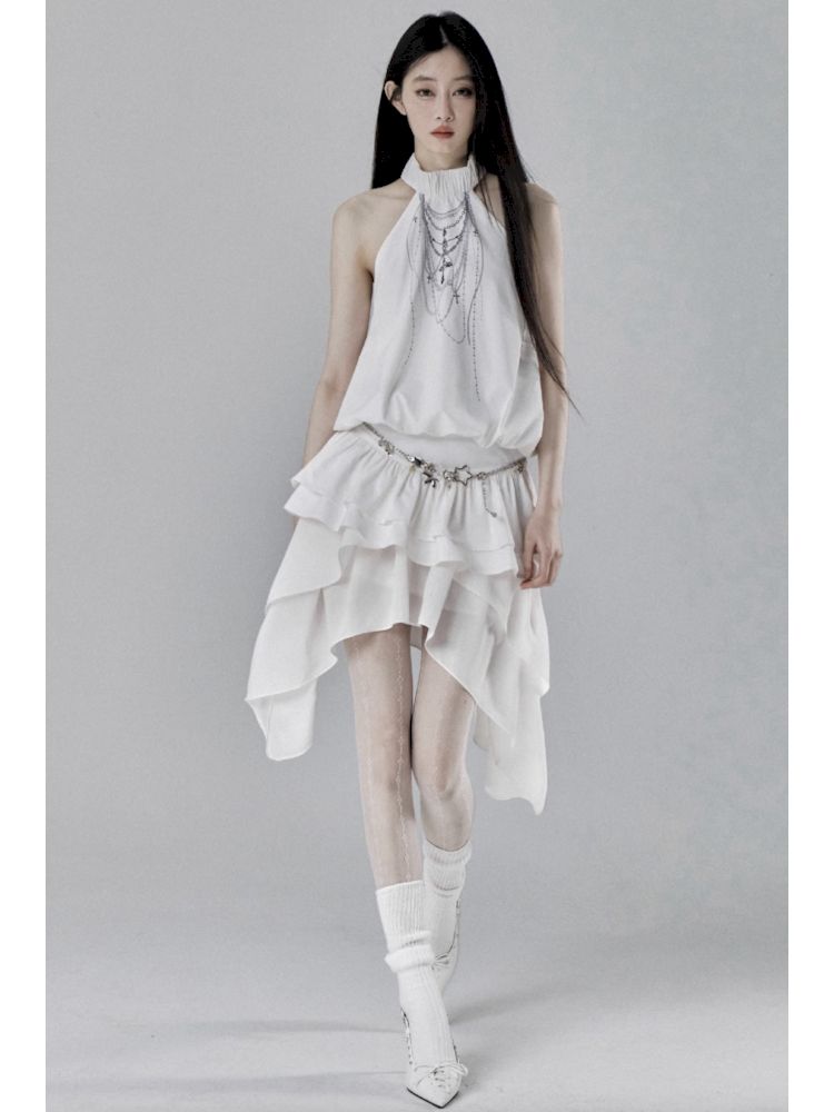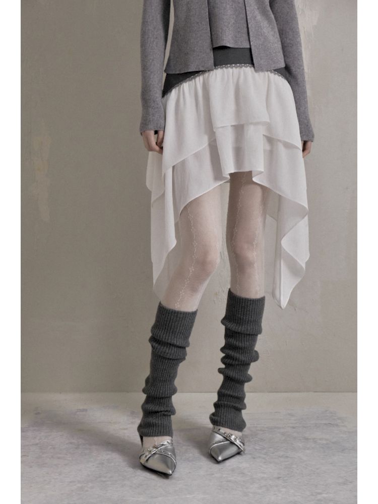 Irregular mesh splicing a-line high waist bustier skirt 【s0000007783】