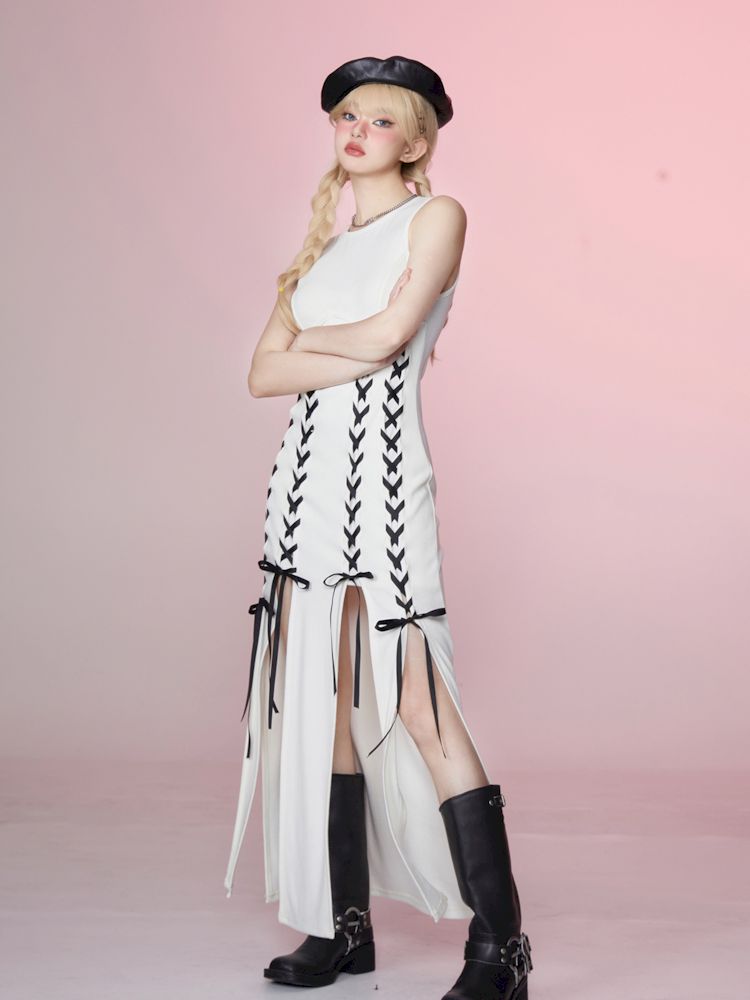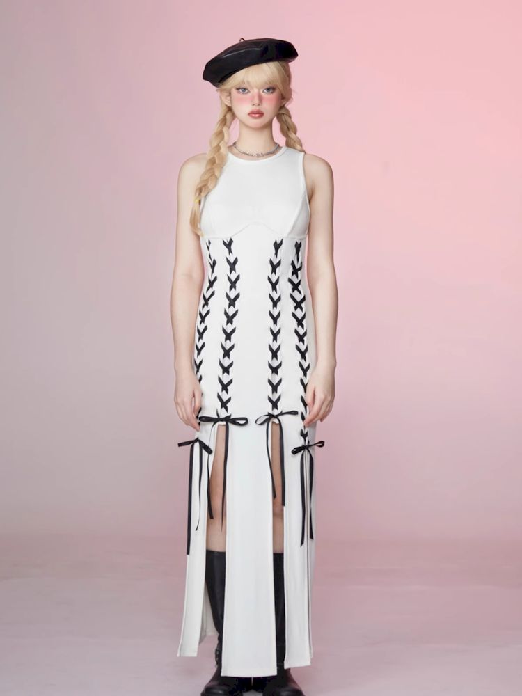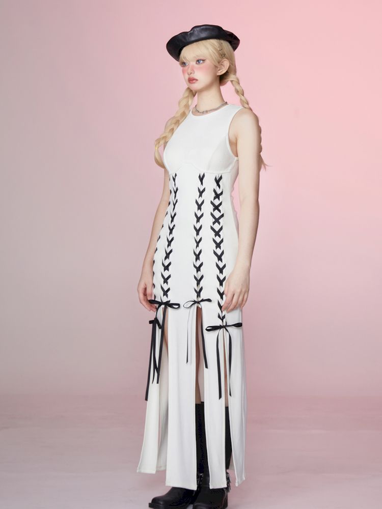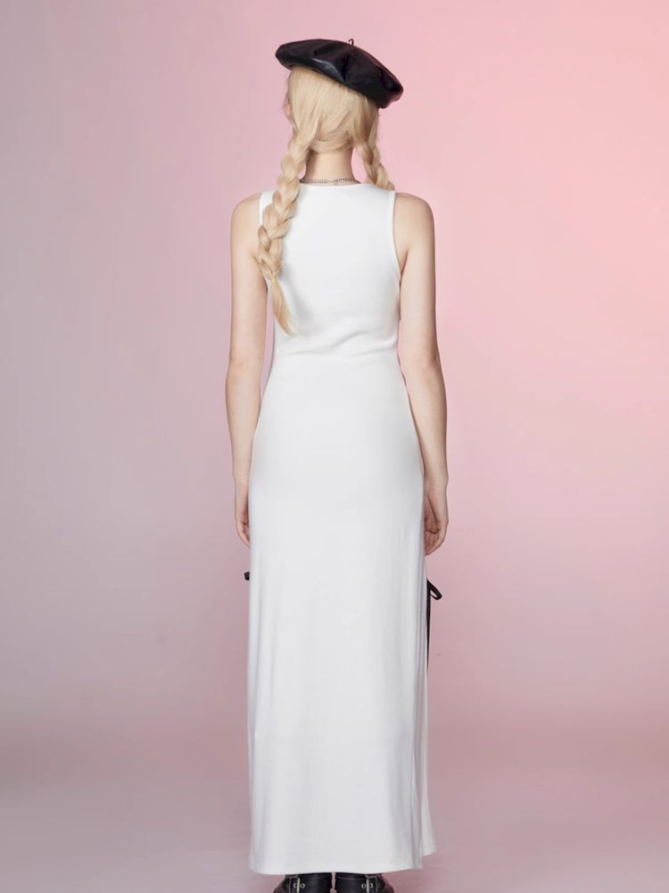 Tie Split Sleeveless Wrap Hip Slim Long Dress【s0000007862】