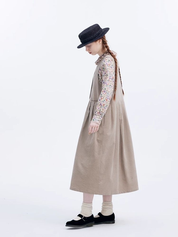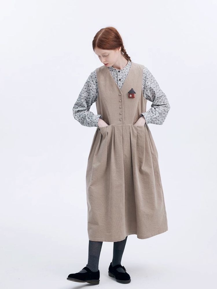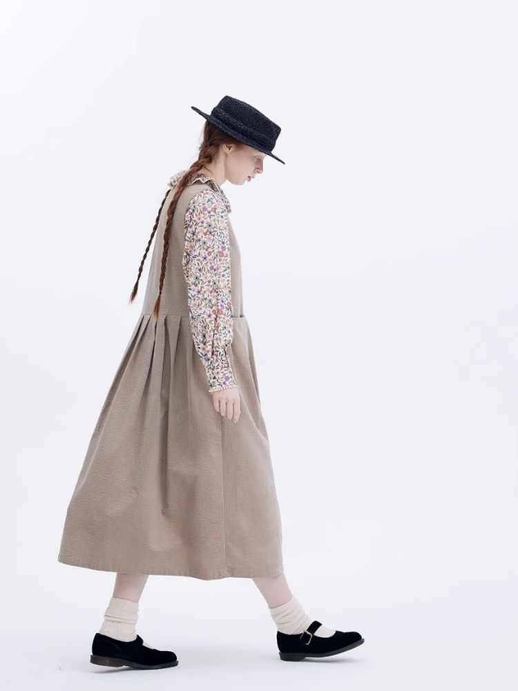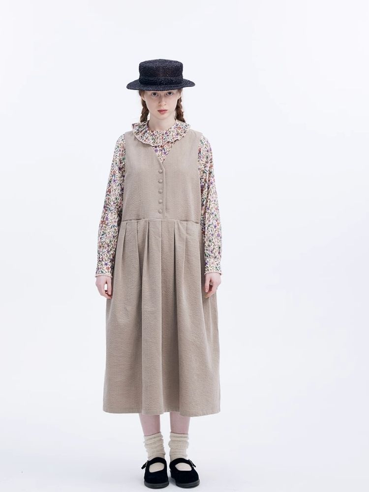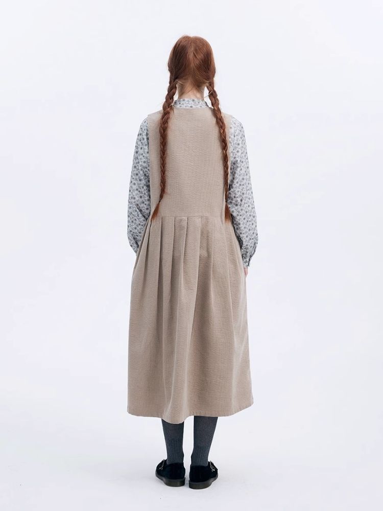Corduroy Peplum V-Neck Tank Dress【s0000007949】