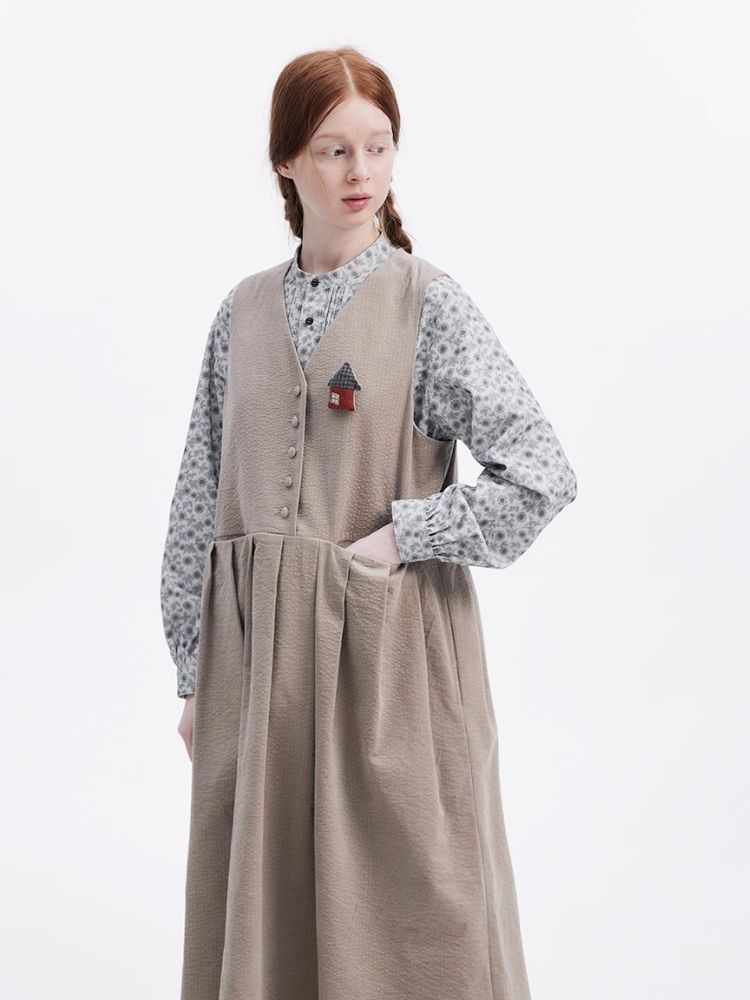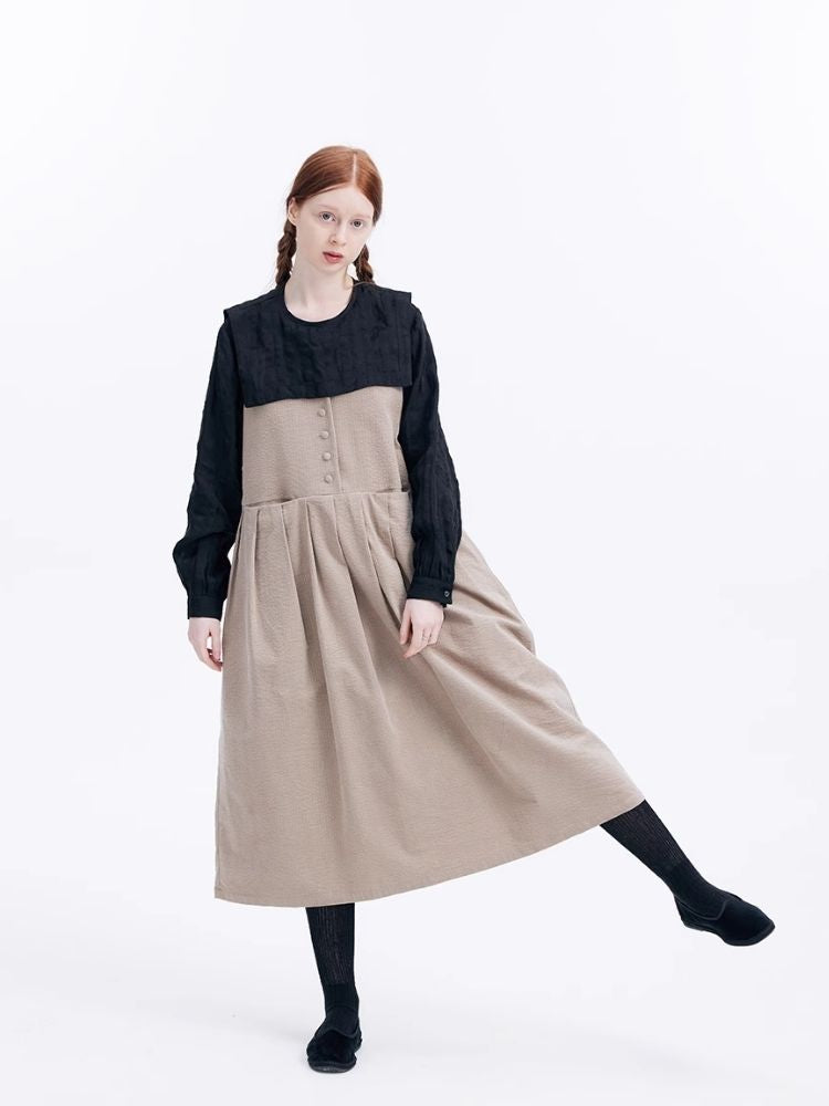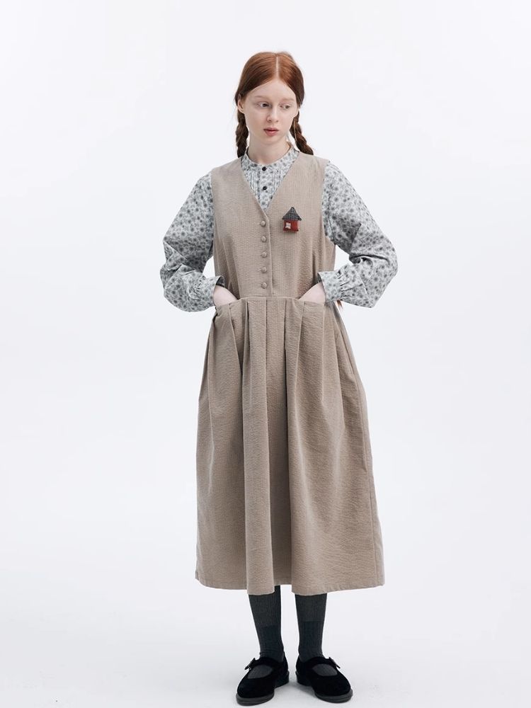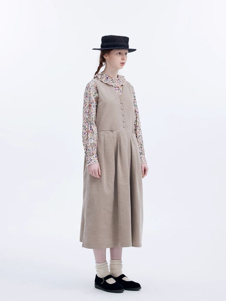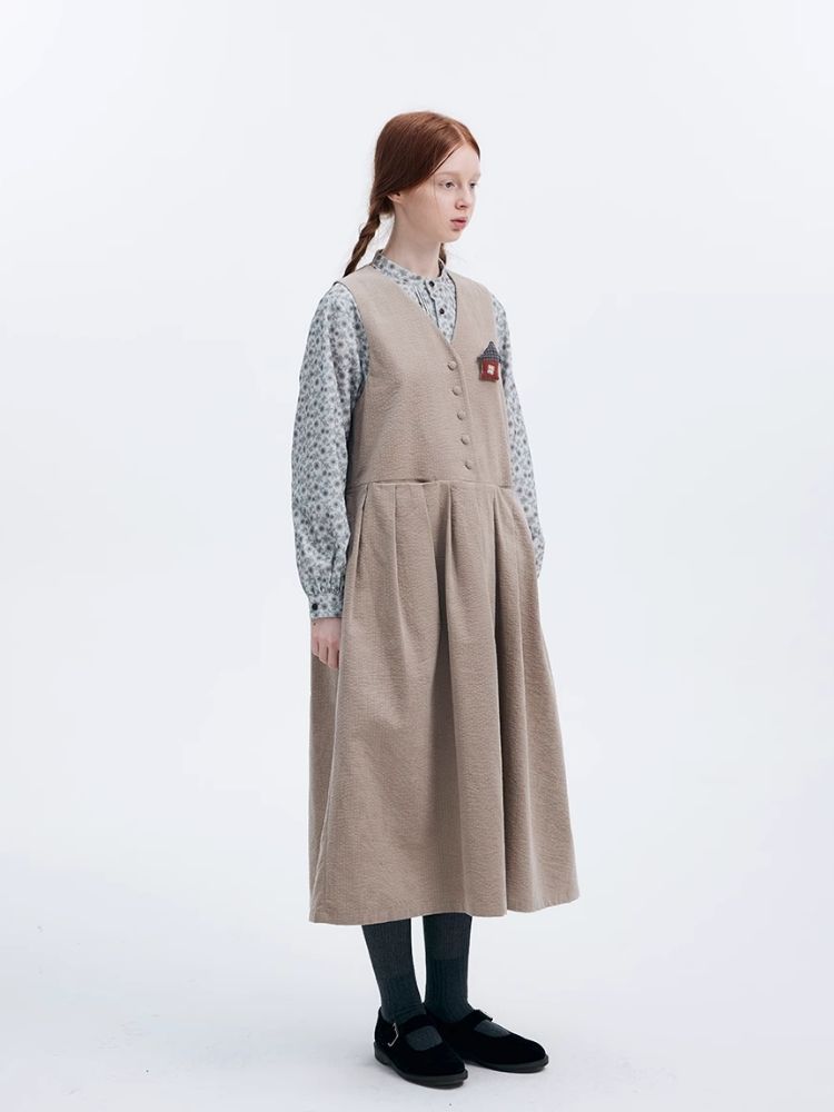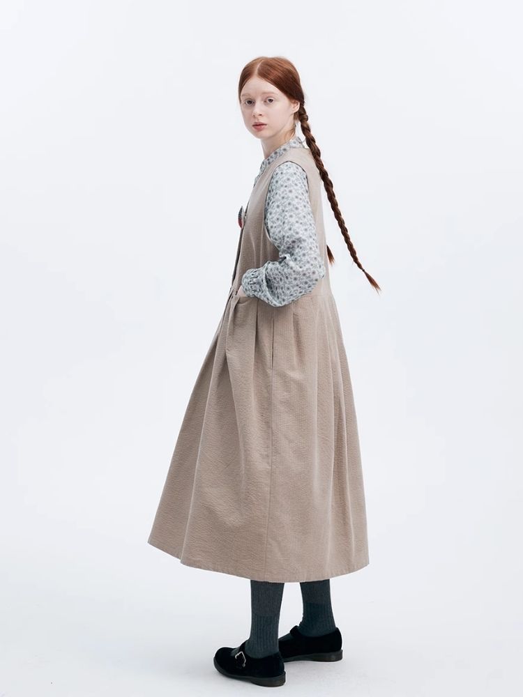 Corduroy Peplum V-Neck Tank Dress【s0000007949】
