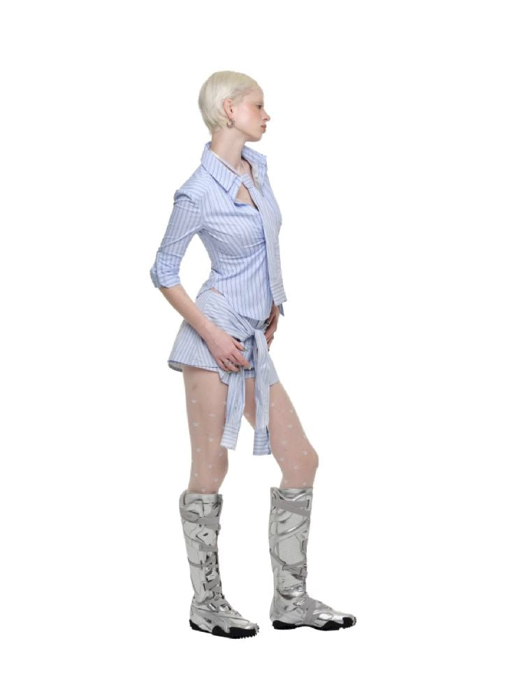 Tie Striped Shirt Low Waist Short Skirt【s0000011607】