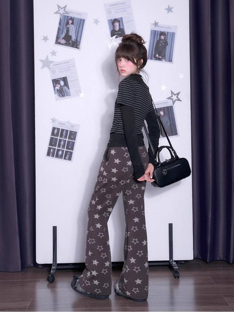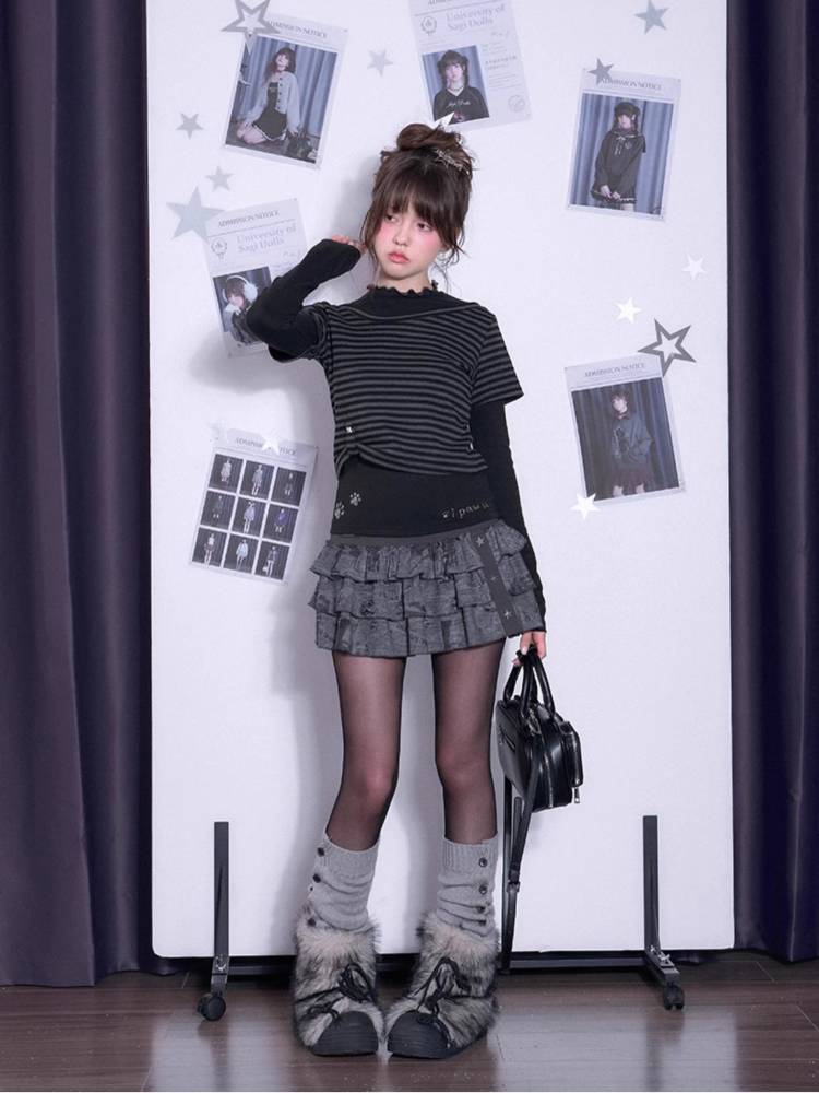 Striped fake two-piece long sleeve T-shirt【s0000011650】