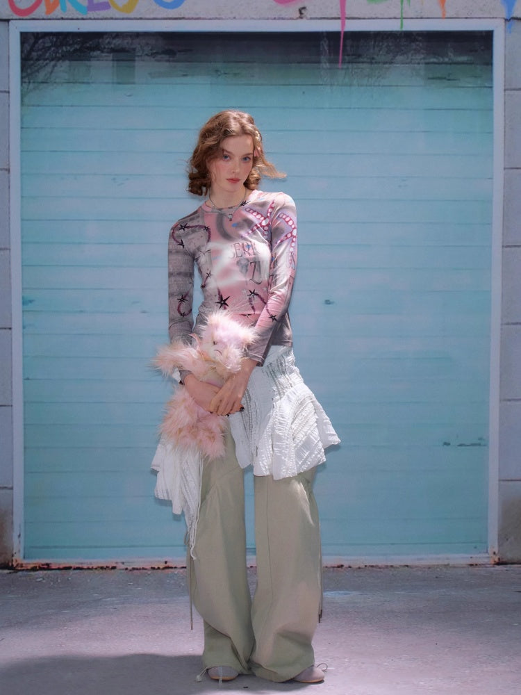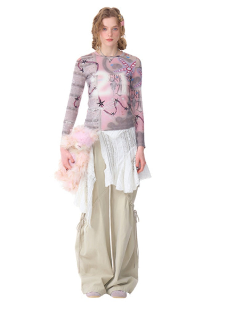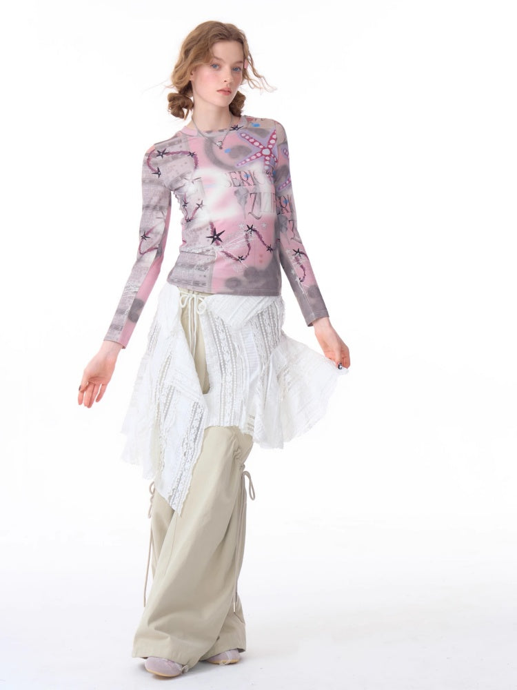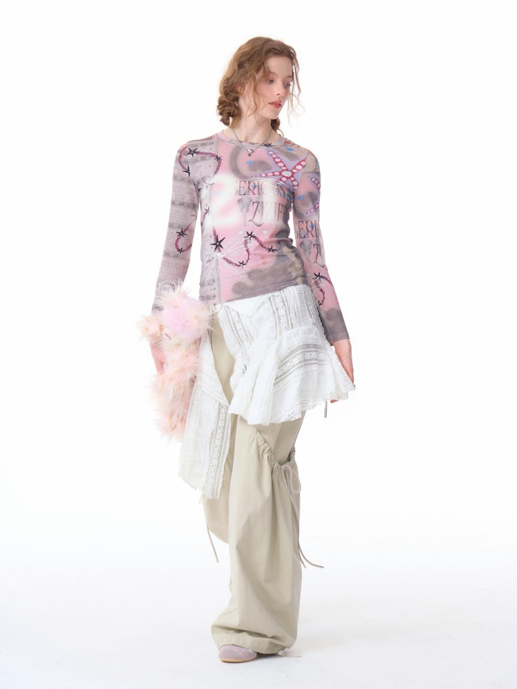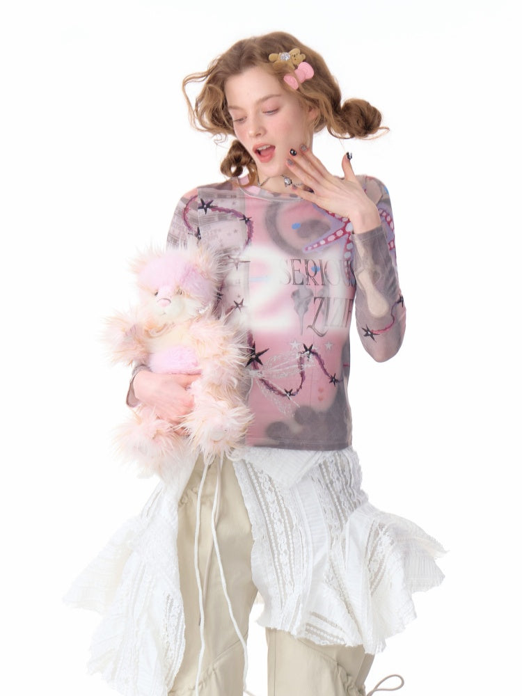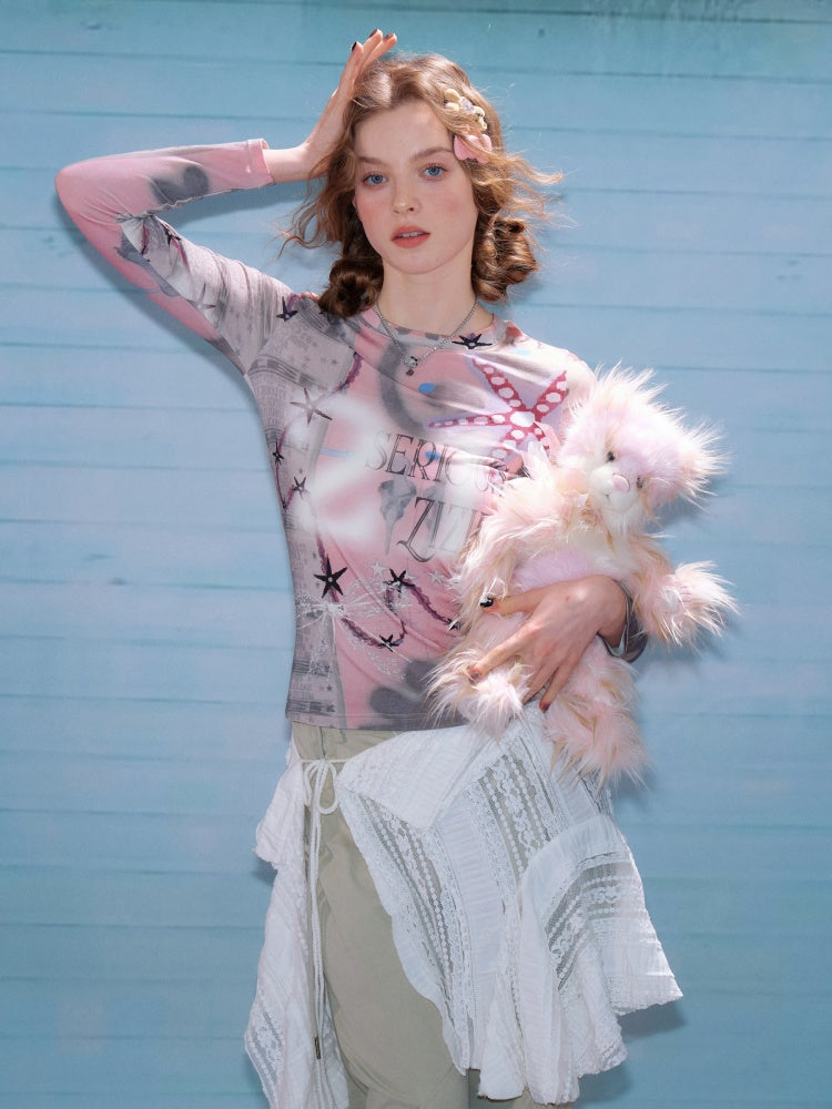 Star Digital Print Long Sleeve Numbering T-Shirt【s0000011760】