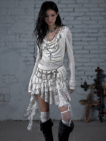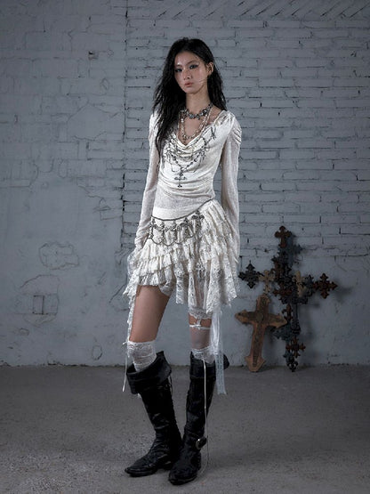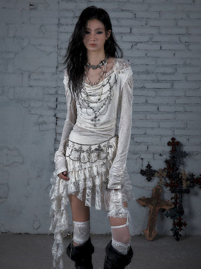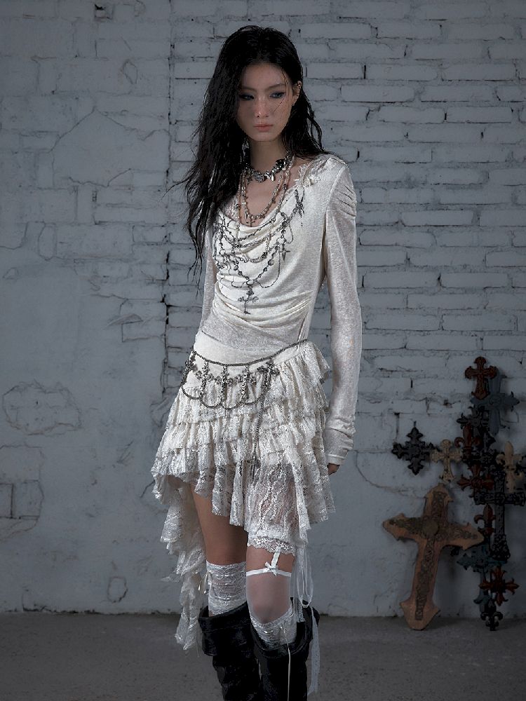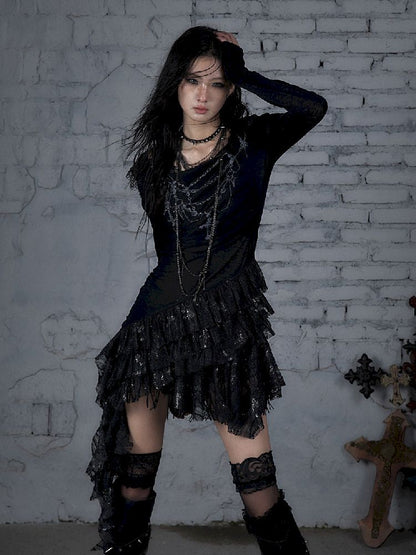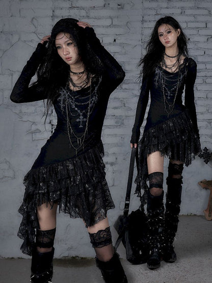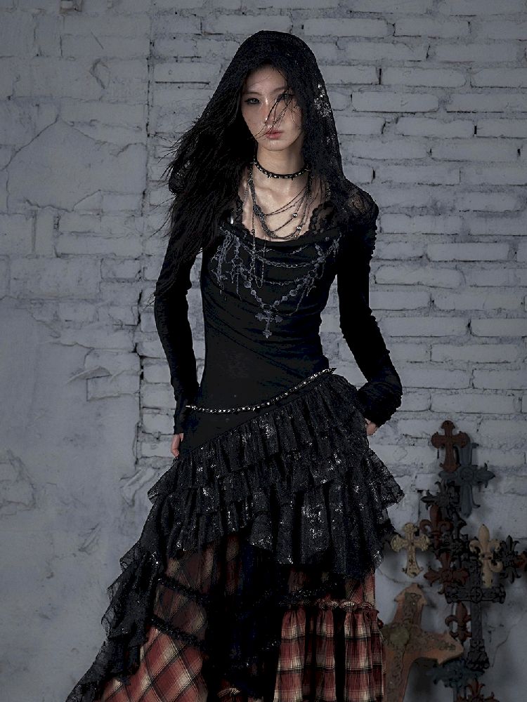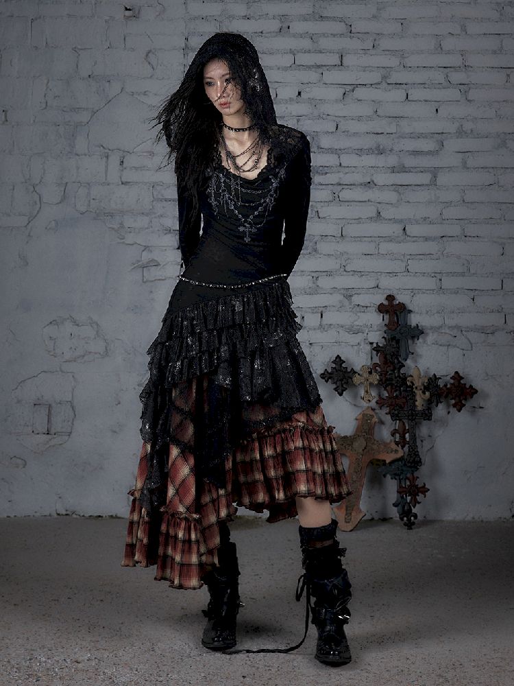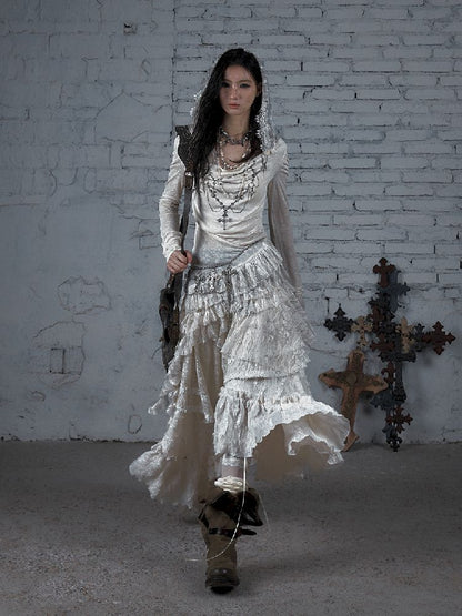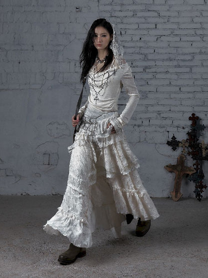 Lace Knit Bottom Long Sleeve Hooded Dress【s0000011823】