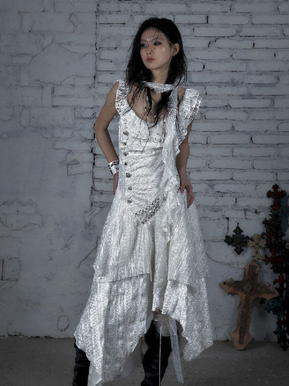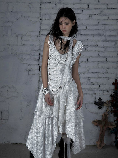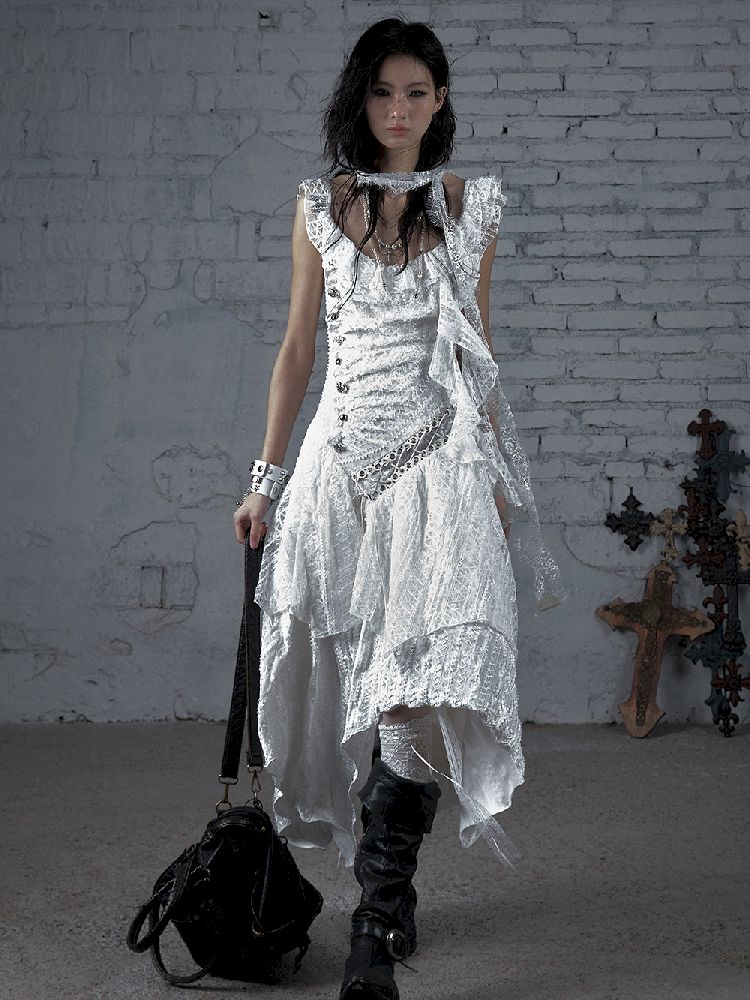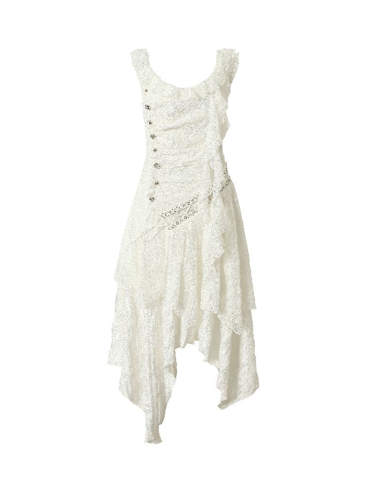 Lace Halter Ruffle Deconstructed Irregular Dress【s0000011826】
