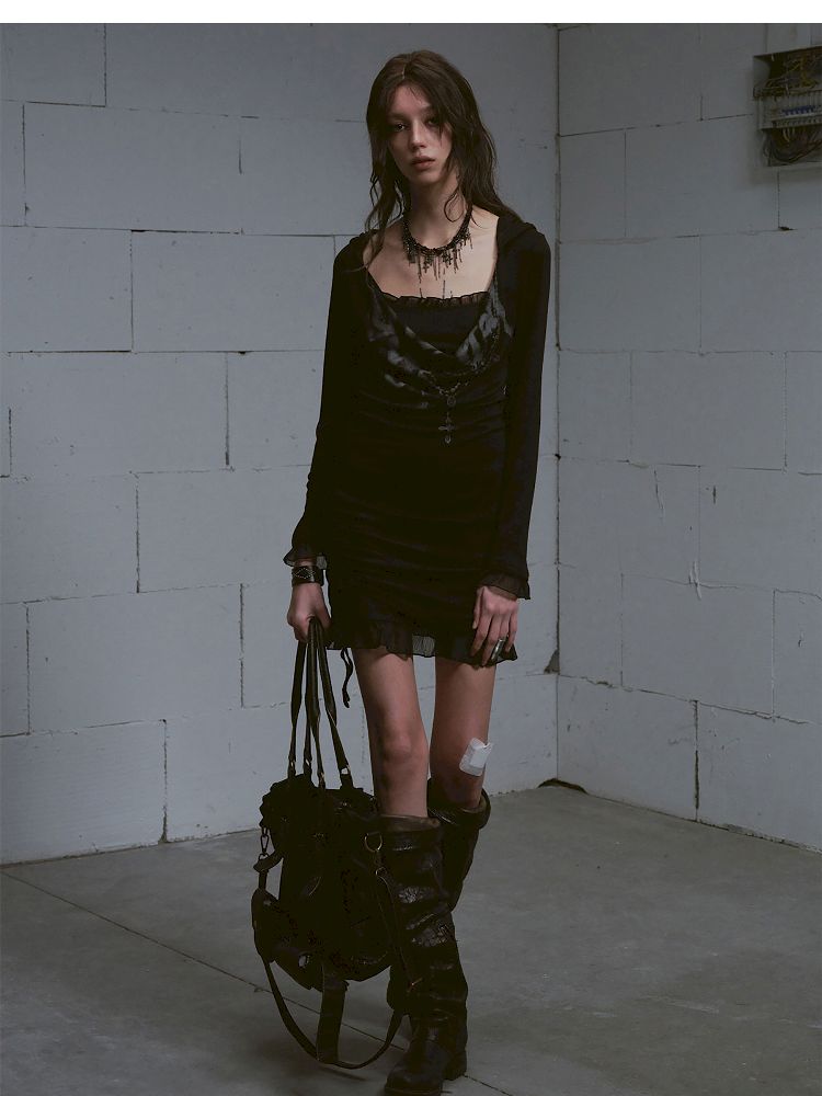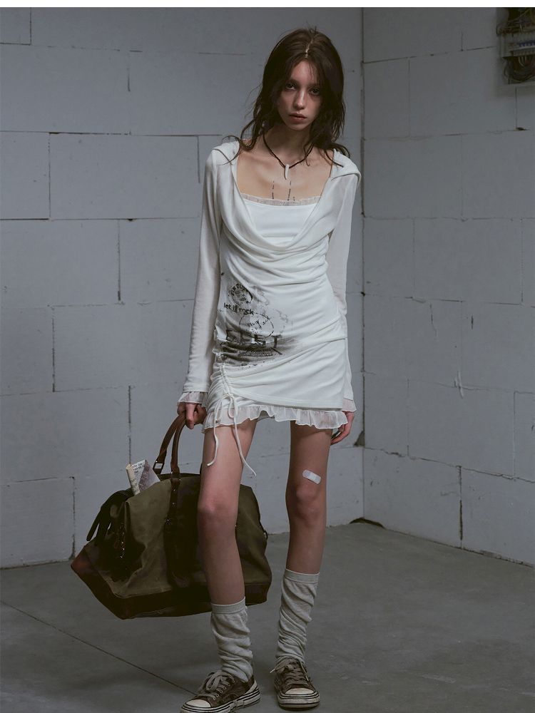Swing Neck Long Sleeve Hooded Dress【s0000011846】