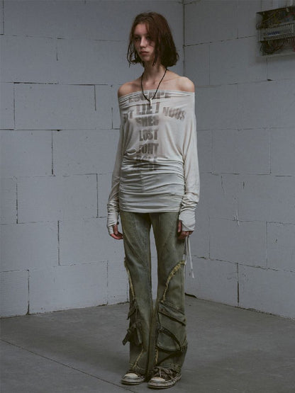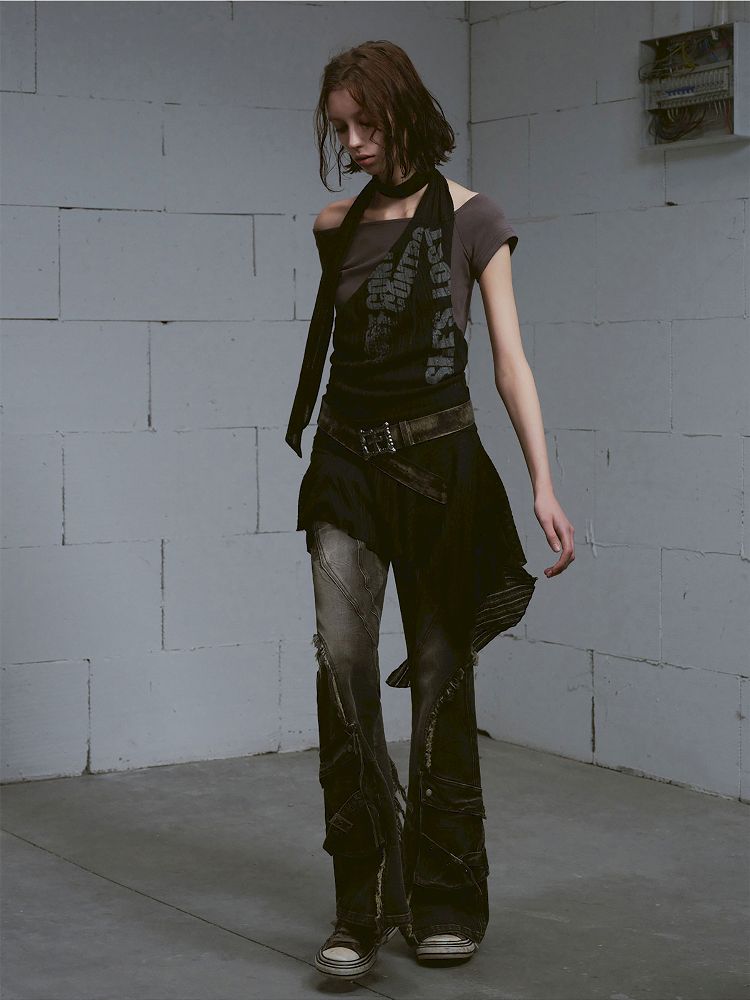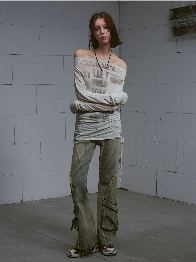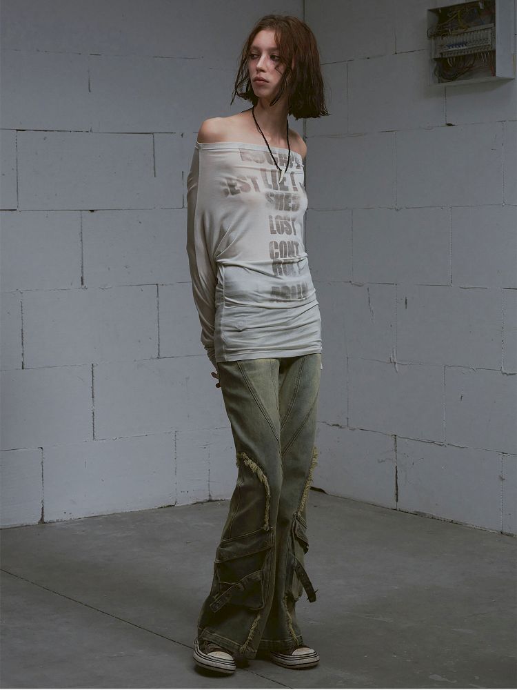 Raw Edge Low Rise Flared Jeans【s0000011847】