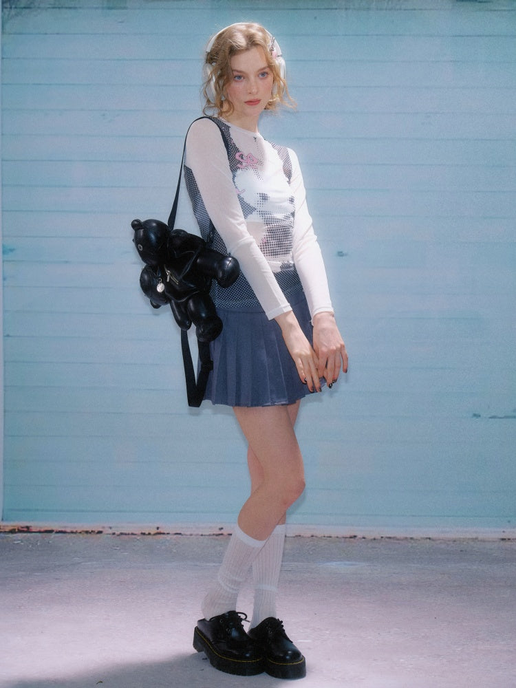 Pixel Rabbit Print Crew Neck Long Sleeve T-Shirt【s0000011917】
