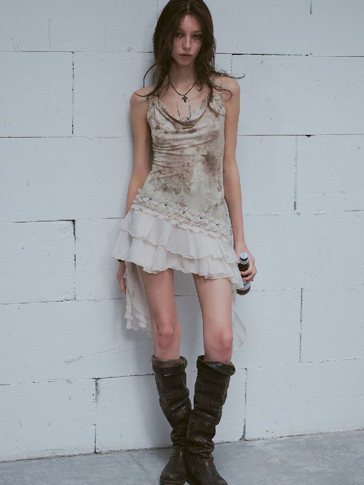 Patchwork Lace Mesh Swing Neck Dress【s0000012043】