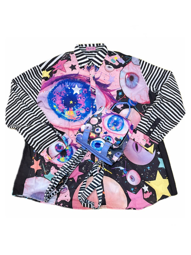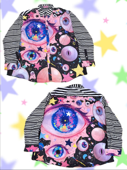 Big Eyes Subculture Print Stripe Loose Tops【s0000012125】