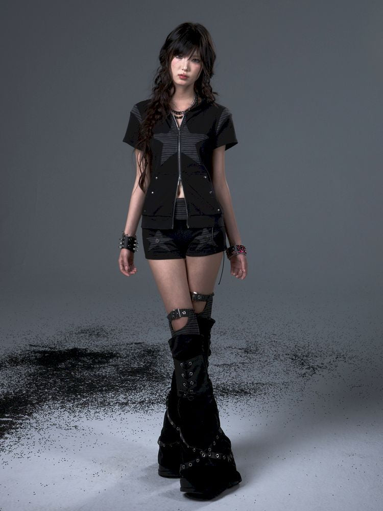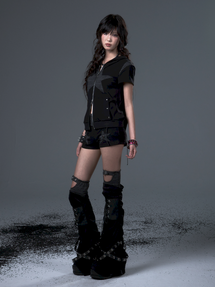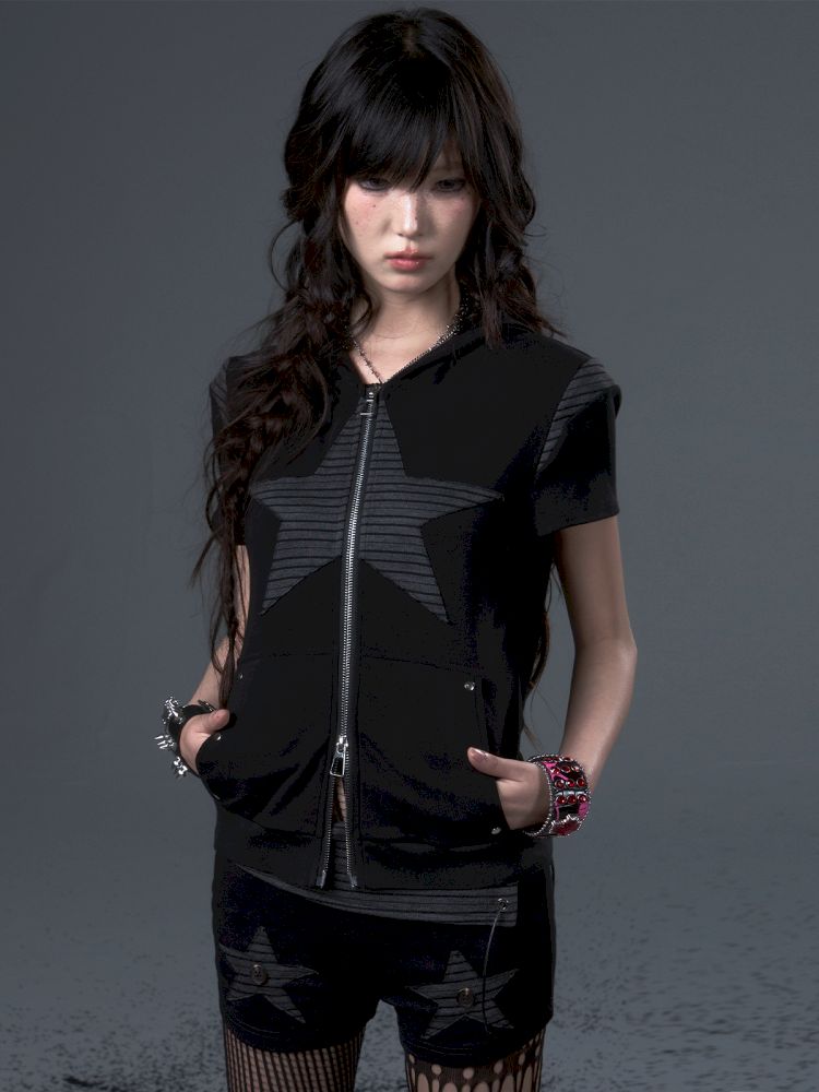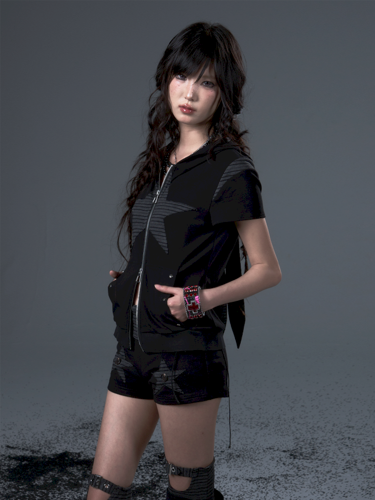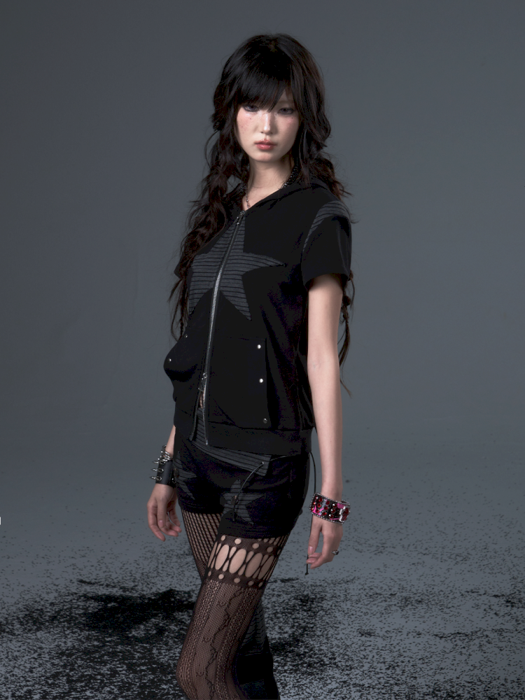 Stars Rabbit Ears Hooded Double Zipper Cardigan【s0000012442】