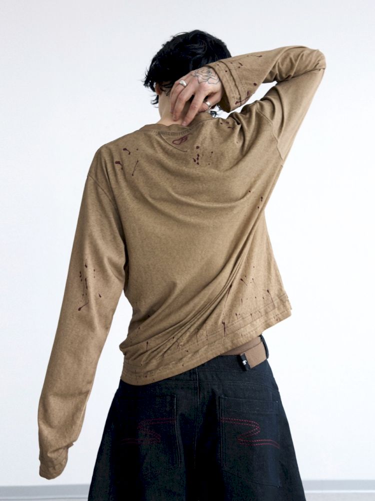 Splash Ink Print Long Sleeve Tee【s0000012471】