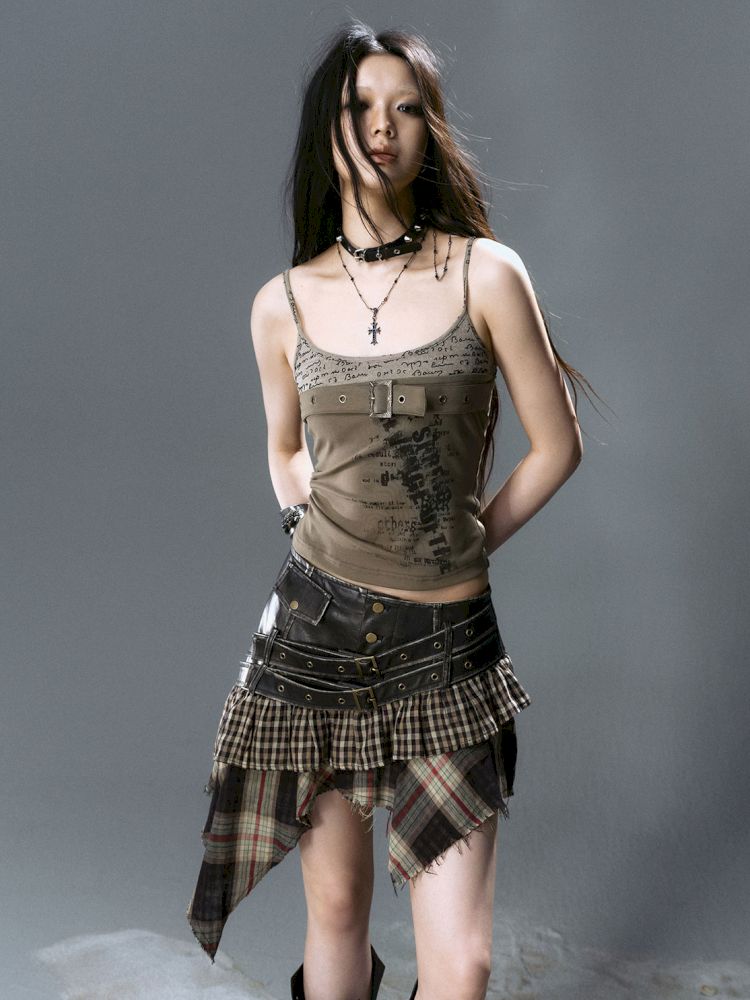 Belt Buckle Patchwork Cami Tank Top【s0000012641】