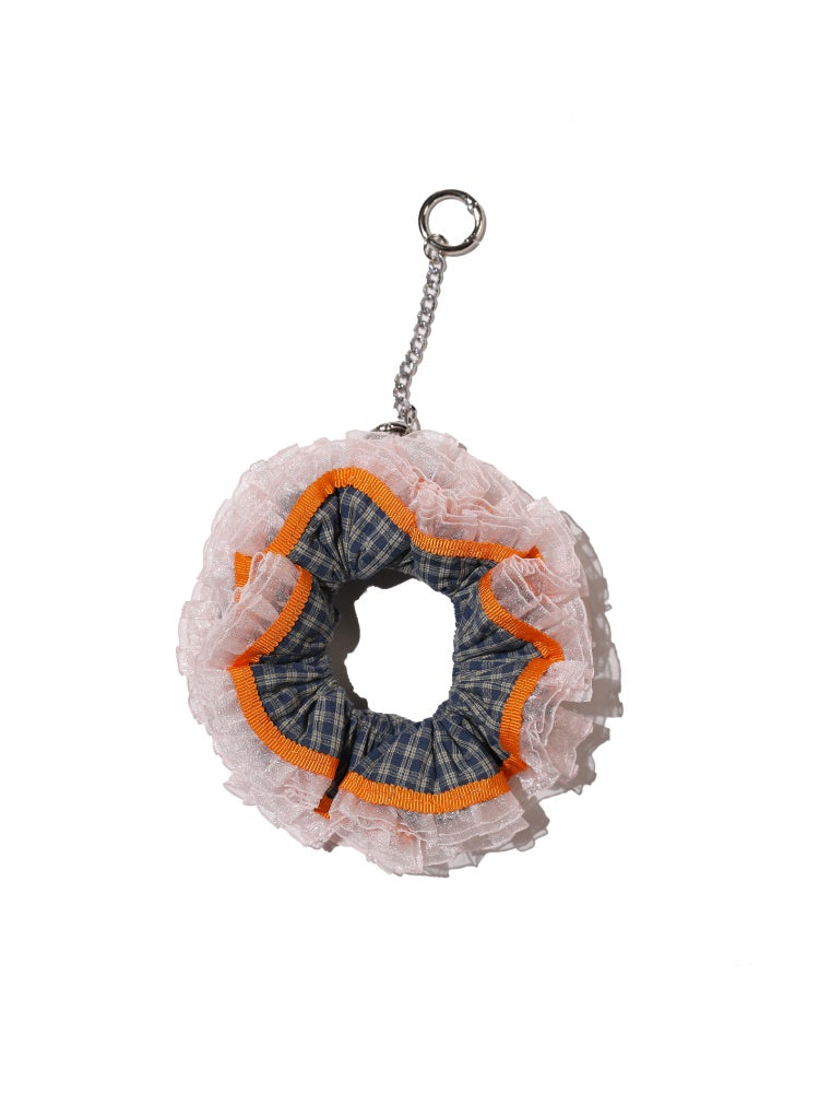 Vintage Check Contrast Pleated Double Lace Scrunchie【s0000012747】