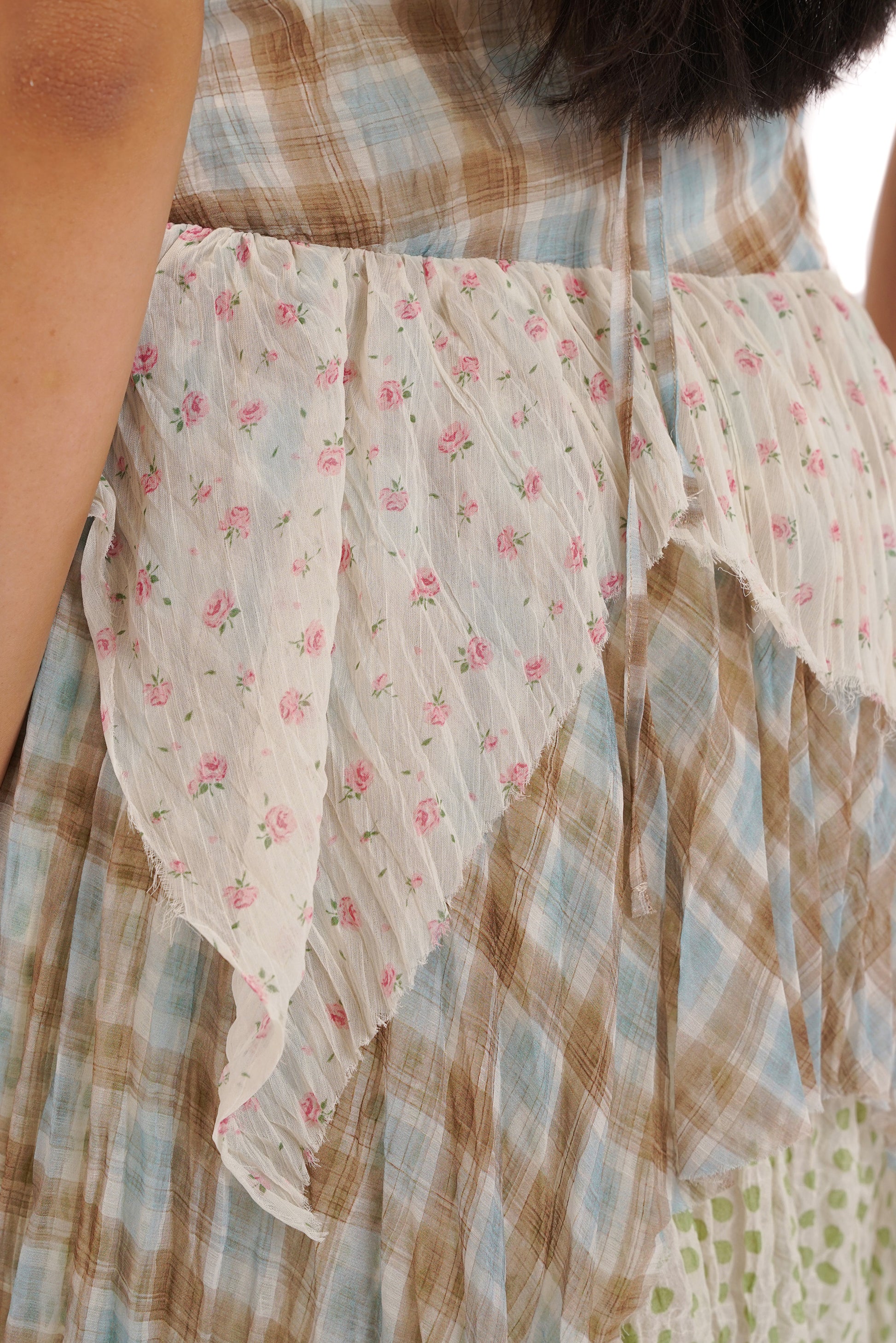 Floral Plaid Dot Layered Stitching Irregular Hem Cami Slip Dress【s0000012750】