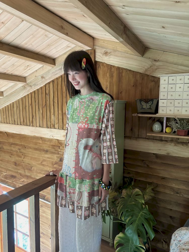 Color block print loose cake skirt【s0000012771】