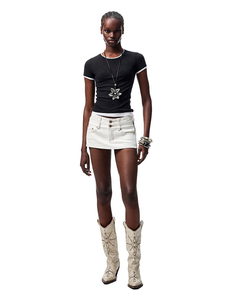 Double Waistband SideI Pull Detachable Denim Mini Pants【s0000012902】