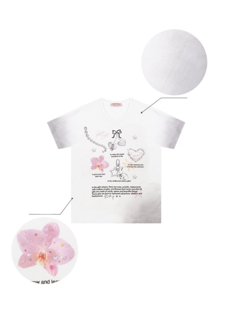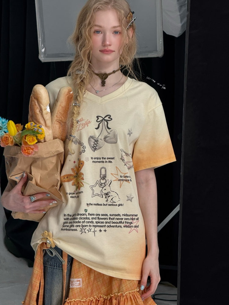 Gradation Print Loose V-Neck Short Sleeve T-Shirt【s0000013096】