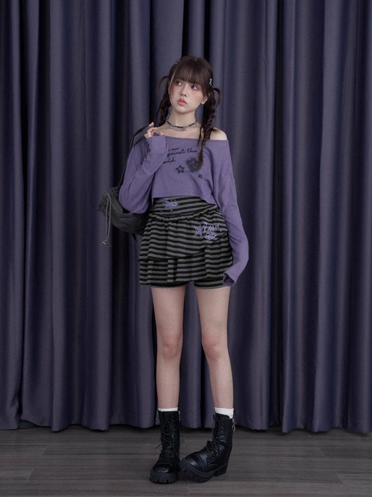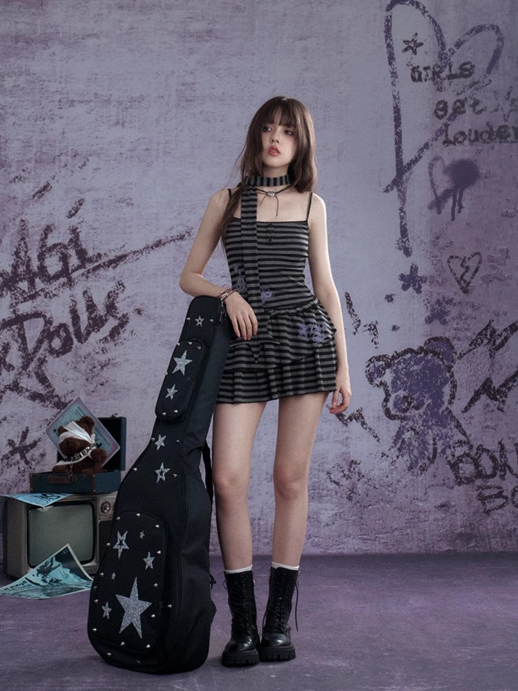 Striped Dress Shorts Scarf Three-Piece Set【s0000013115】