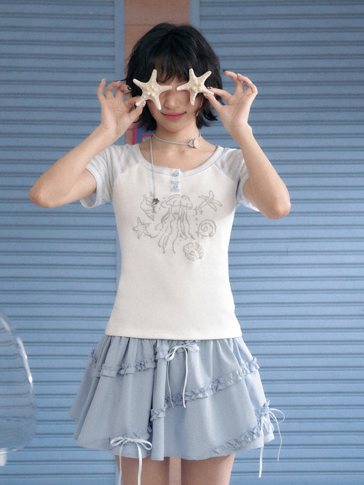 Marine Illustration Raglan Sleeve T-Shirt【s0000013125】