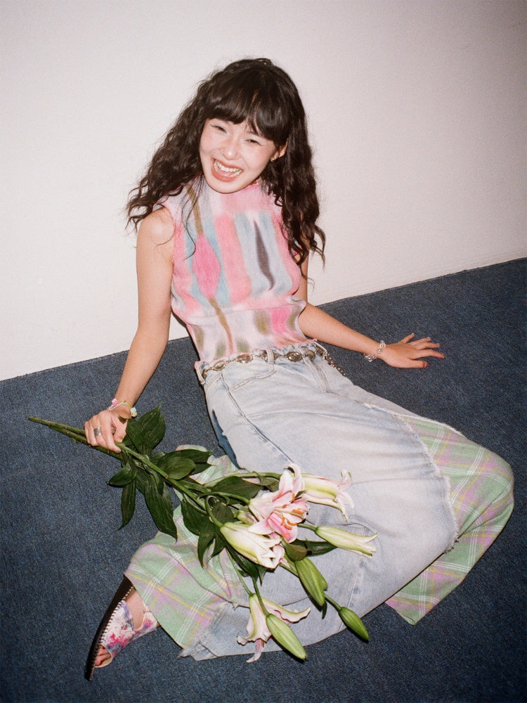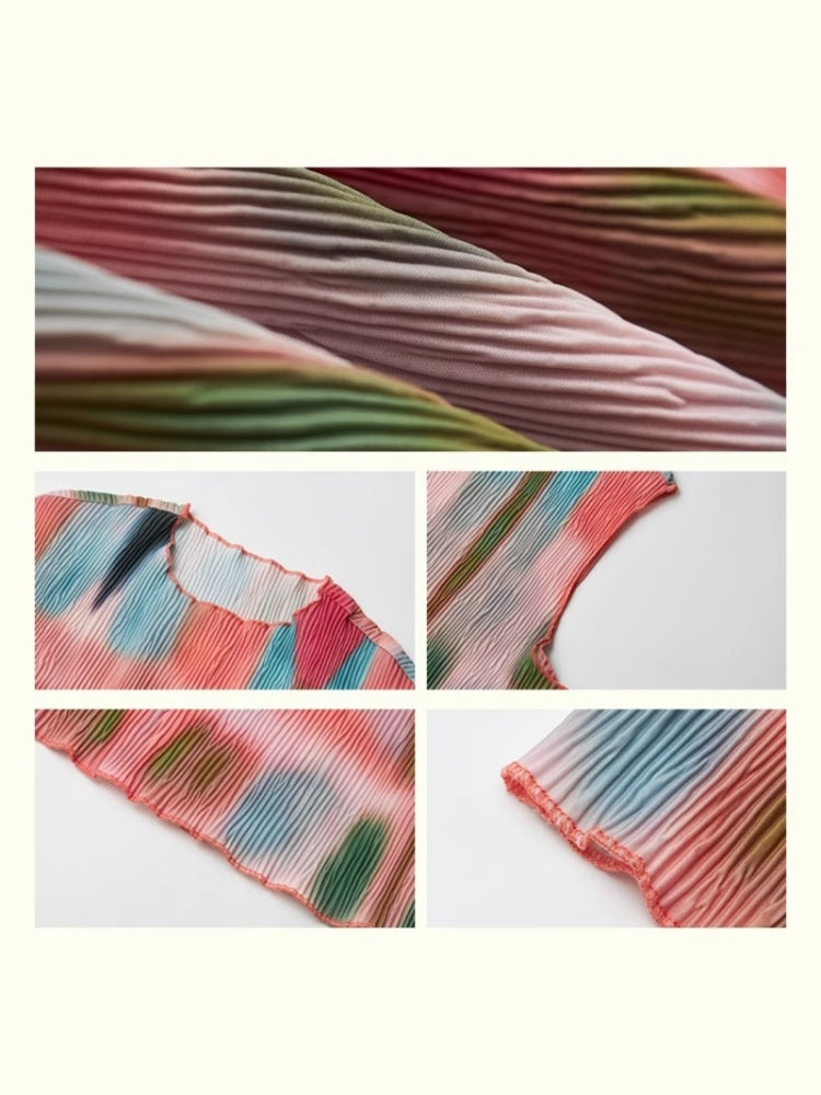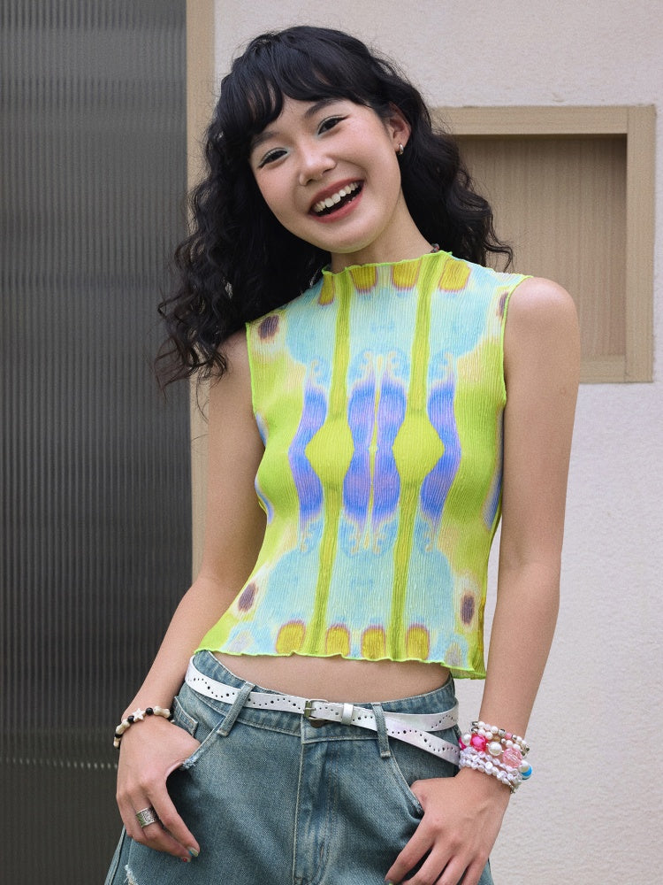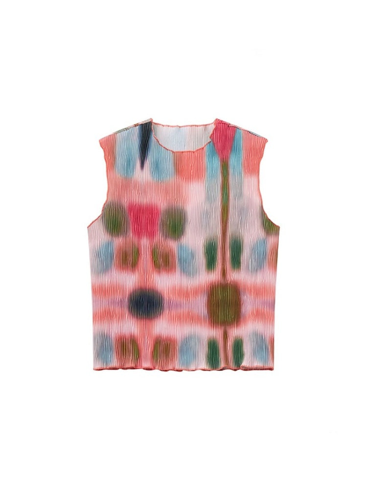 "Dream Movement" Pressed Pleated Print Sleeveless Vest【s0000013404】
