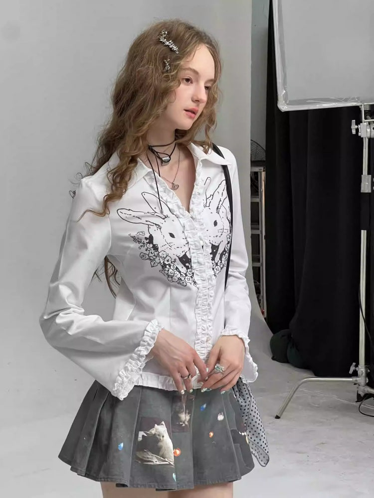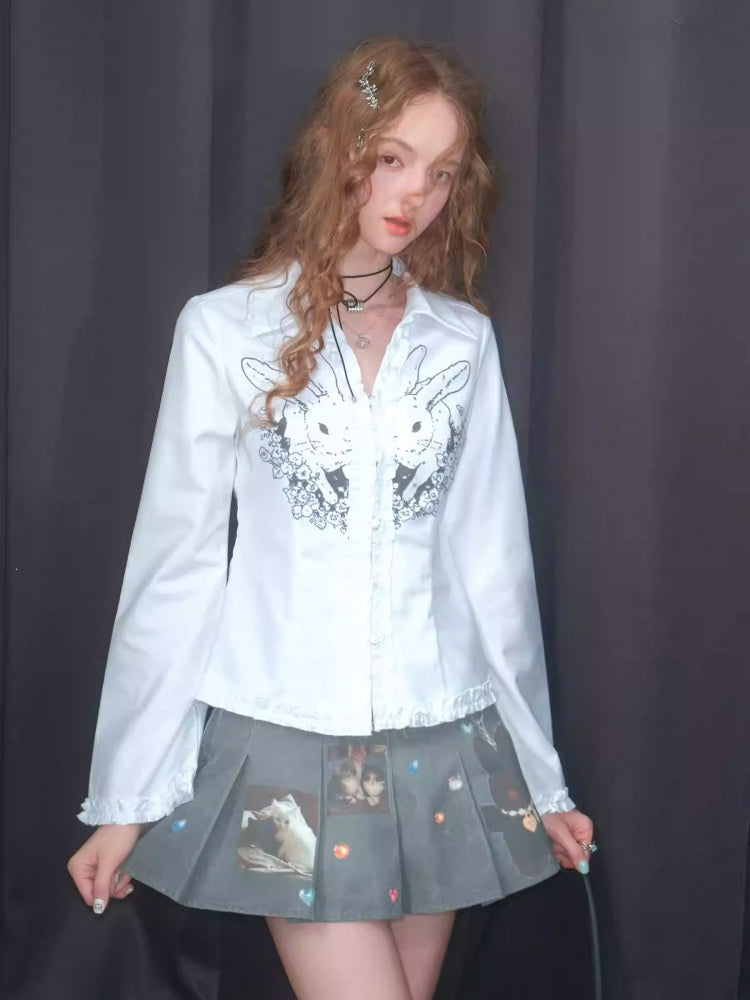 Rabbit Print Slim Long Sleeve Shirt【s0000013787】