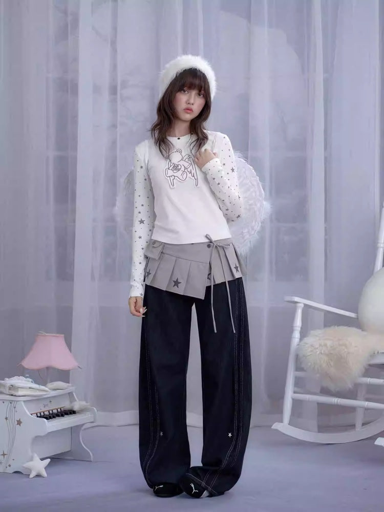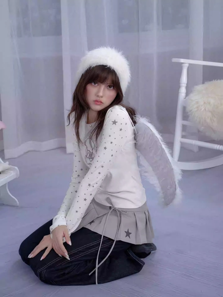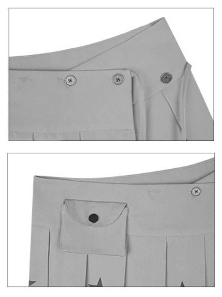 Star Print Pleated Wrap Mini Skirt【s0000013807】