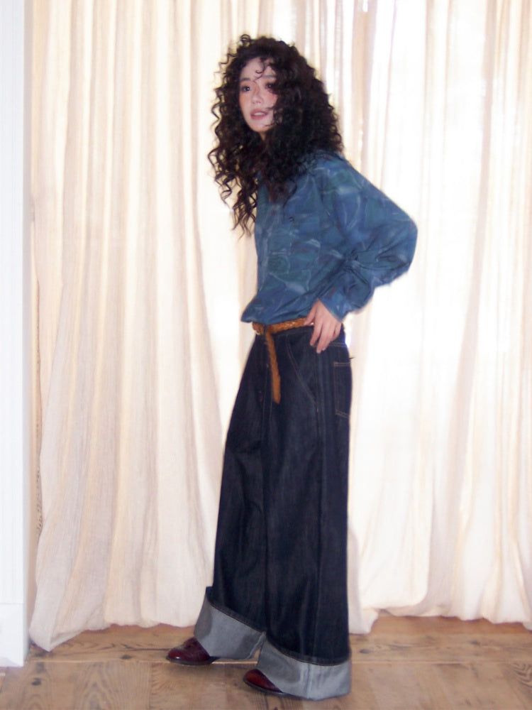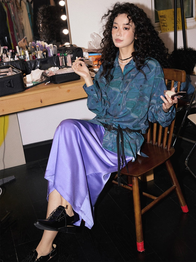 "Deep Blue Art Realm" Abstract Print Loose Long Sleeved Shirt【s0000013832】